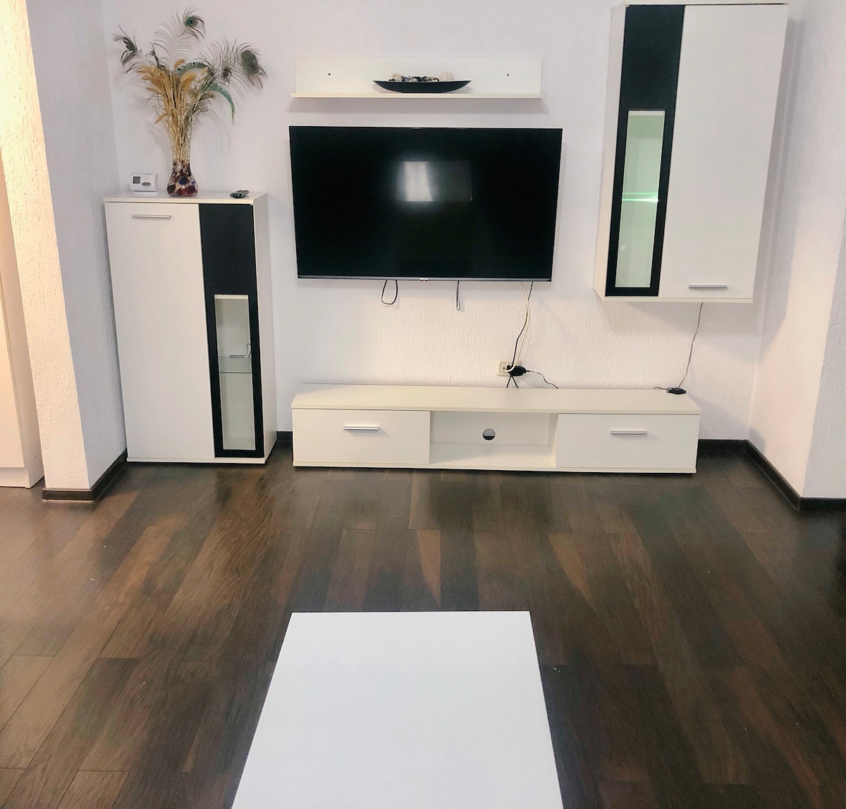 Entirely new decorated place with new furniture and appliances, located near city center (straight walking distance 500 meters), with supermarkets nearby . The ground floor studio has a sleeping area with a extensible couch for 2 people. The studio has a fully equipped kitchen, fridge, coffee espresso machine , microwave oven, gas cooking plate, washing machine, air conditioner, free cable, smart TV , free Wi-Fi,laptop desk. Free private & public parking near building.