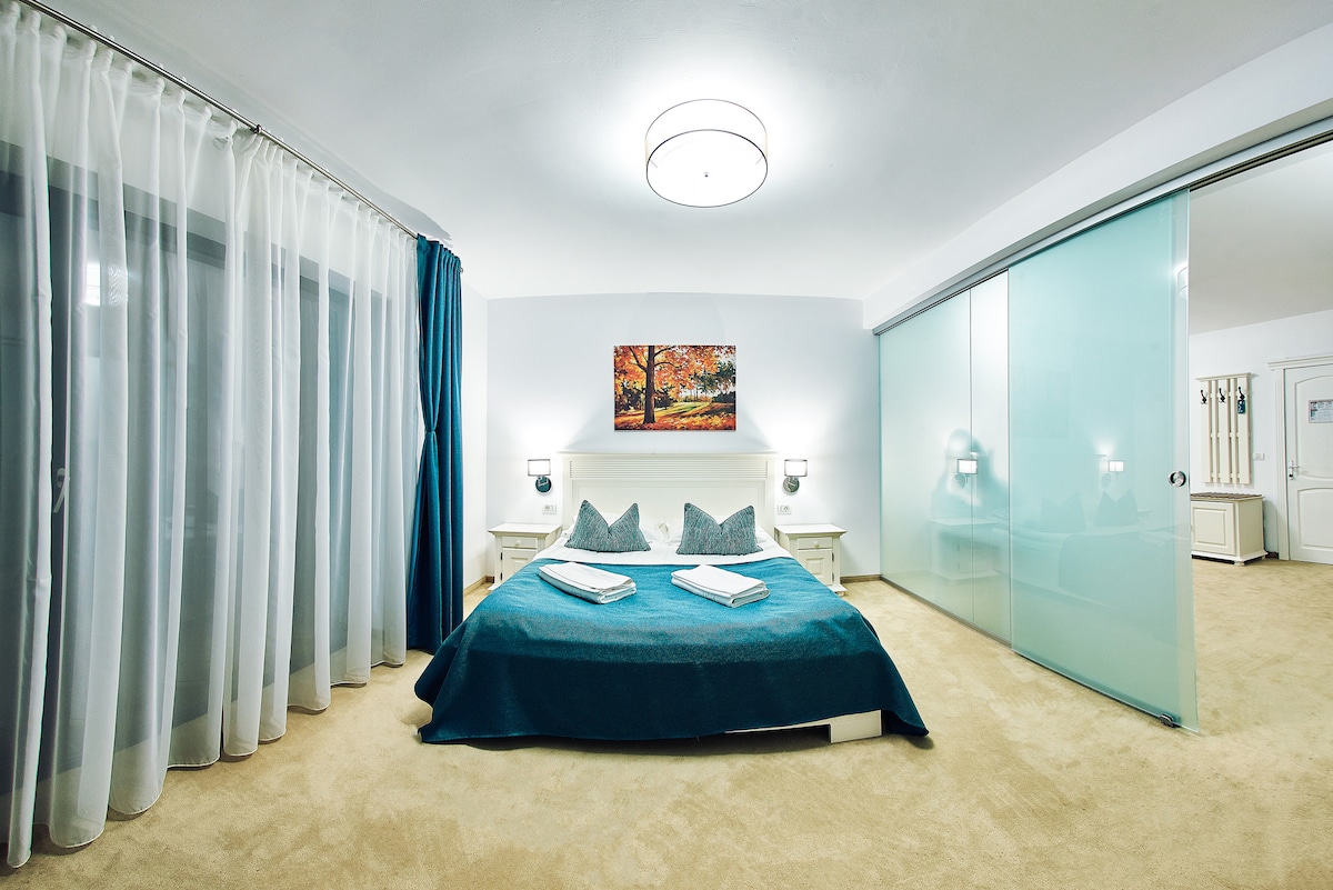 Această cazare elegantă este perfectă pentru călătoriile în grupuri mici de 4 persoane. Este o camera mare (56mp), deschisa cu un semineu central si doua canapele extensibile unde va puteti odihni foarte placut. Are vedere directa spre padure si este locul ideal unde va puteti recrea si odihni impreuna cu familia si prietenii. Putem oferi si mancare home cooked (mic dejun, pranz si cina) Deasemenea putem oferi si excursii si ghid pentru obiectivele din zona 23dec-3 ian este rezervat
