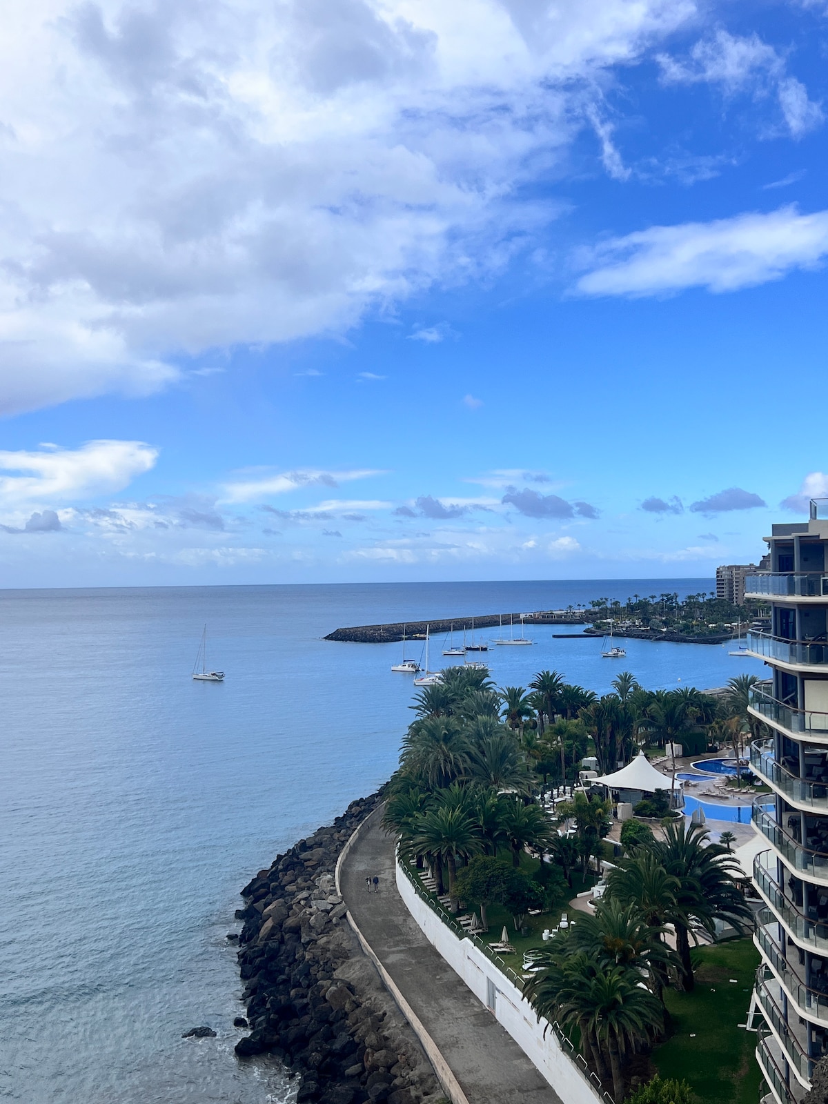 Disfrute de una estancia con todas las comodidades en este céntrico alojamiento con WI-FI y terraza vista mar, en el barrio pesquero de Arguineguín, a 100 m. de la playas de Costa Alegre y las Marañuelas. El complejo dispone de parking y de solarium con piscina, vistas a las montañas, a la playa/océano, y al Teide. Se compone de un dormitorio doble con TV y ventilador de techo, baño con plato de ducha, salón con AC, ventilador de techo, smart TV y sofá cama. Cocina totalmente equipada.