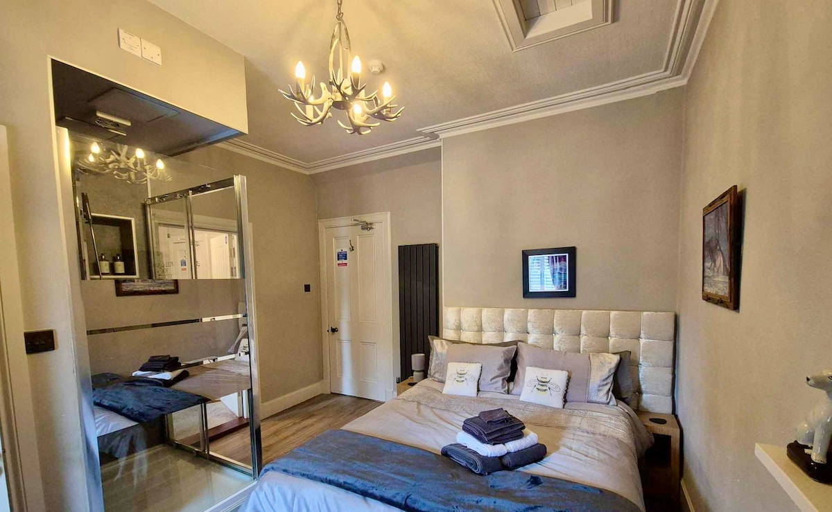 Bright, airy garden room, with own entrance. Perfect base in West Coast of Scotland for exploring Ayrshire. Great location with street parking available at property and nearby to all transport links. Beach is minutes walk away, also minutes walk to Ayr town centre, shops, bars, restaurants and Ayr Racecourse. Perfect base for those without a car as walking distance to centre. 7 miles from Royal Troon golfcourse and 15 miles to Turnberry.