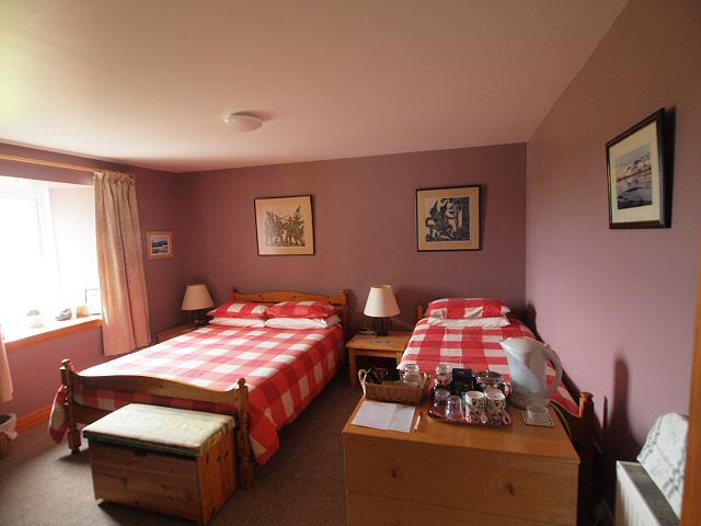 Twin bedroom, sitting area, breakfast area and shower. Stunning views of Lochranza Bay. Please note 0.3mile up a rough hill track, parking at foot of track. Close to Arran Coastal Way and Lochranza - Claonaig ferry. Bus stop 0.8mile. Mini fridge, microwave, plug-in single hob, kettle, toaster. Breakfast provided; cereals, tea, ground coffee, bread, butter, milk, conserves. Gluten free/vegan if requested in advance. Attached to owners' home and artist's studio. We are next door for help/advice.