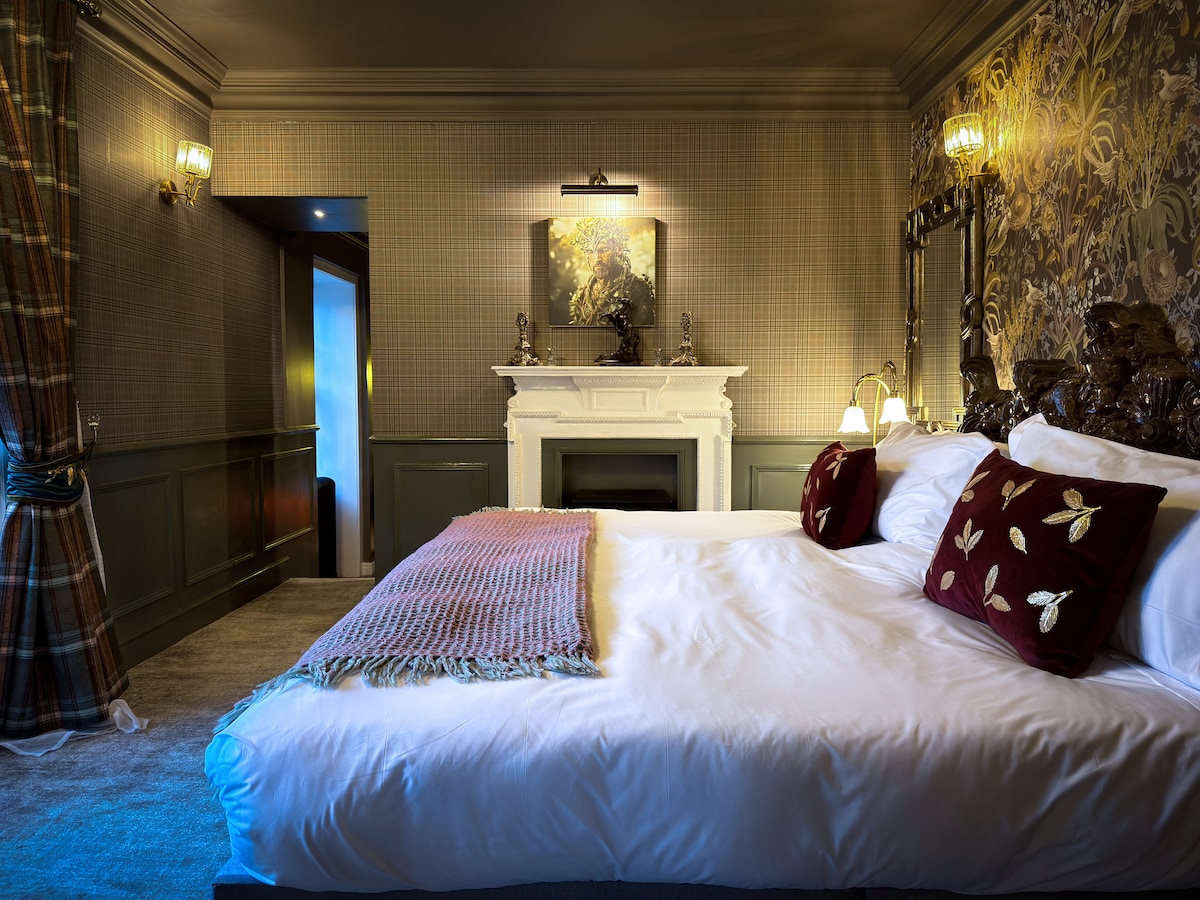 Enjoy a historic retreat in a picturesque setting, inspired by the Ghillie Dhu, a forest guardian known for aiding travellers. This peaceful room features a king-size bed, private bathroom, and cosy fireplace, surrounded by lush woodland and serene forest views. The Ghillie Dhu Retreat is ideal for nature lovers seeking a restorative escape with modern amenities, honoring its gentle spirit.
