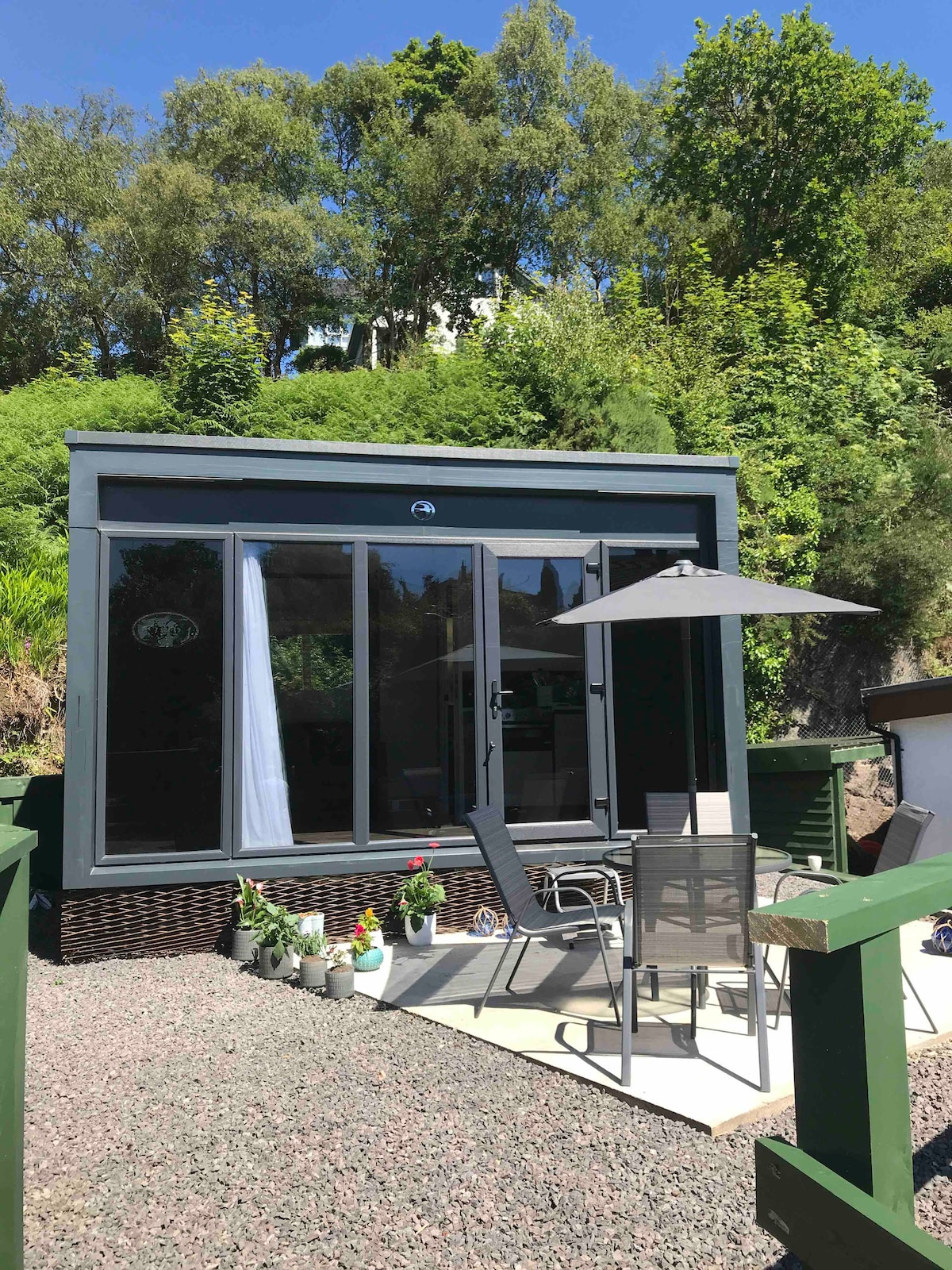 A small pod (2019) with all the amenities you will need. Situated at the heart of Oban (gateway to the isles) within walking distance to the town centre and based right at the foot of Oban's biggest tourist attraction McCaigs tower. With free parking and your very own patio area located within the private gardens of my house, with views of the top of McCaigs tower, hense the name (Tower tops) complete privacy although if any help or information is need I'm just a door knock away. No breakfast