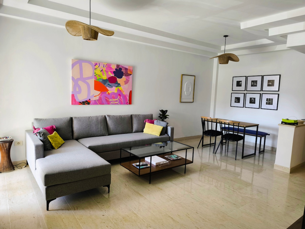 Charming and cozy home in a residential and tranquil area of Tunis. Enjoy a panoramic view of Grand Tunis from the balcony. The space is spacious and bright, with elegant decor reflecting my passions. Each area exudes a cozy atmosphere, creating a welcoming environment where carefully chosen details are highlighted by natural light. The ambiance seamlessly integrates with my interests, providing guests with a unique stay experience.