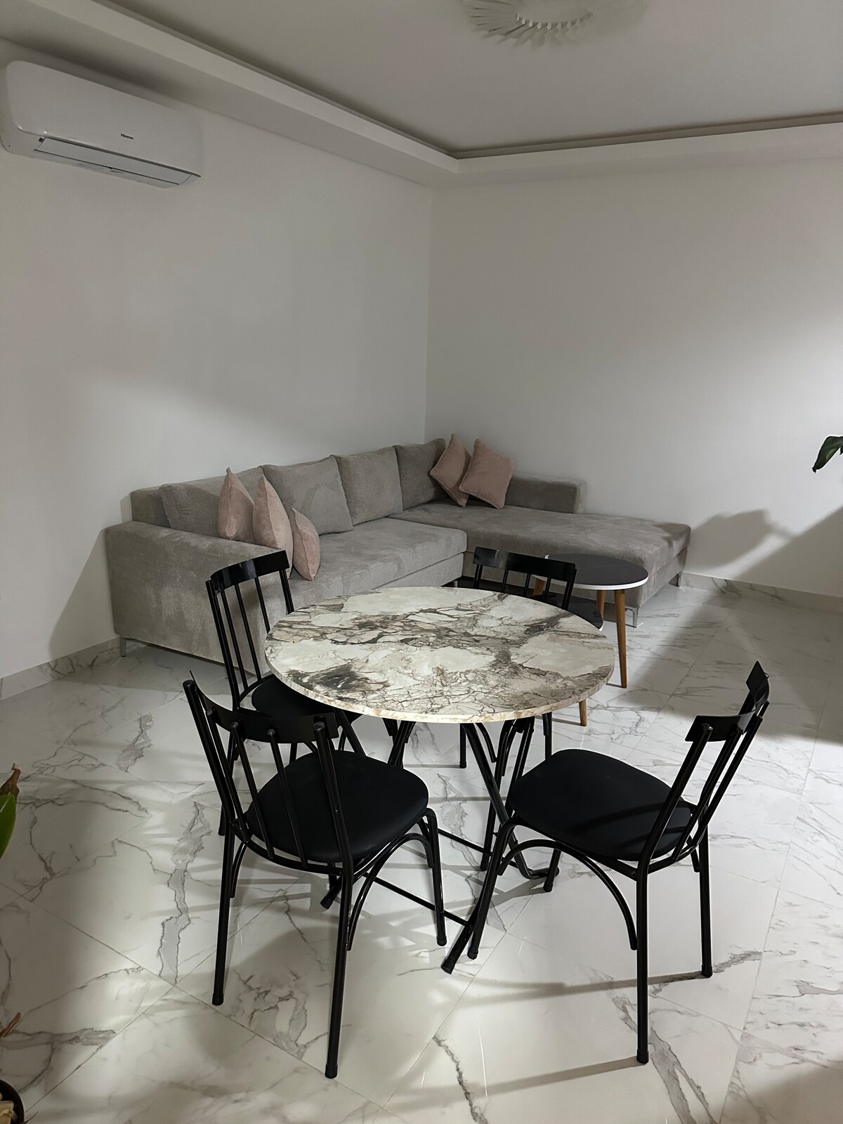 Un bel appartement meublé et haut standing de 60m2, à 10 min de l’aéroport Tunis Carthage. Vous aurez tout à proximité : centres commerciaux, pâtisseries, salon de thé, parcs, restaurants… Vous pouvez trouver tout le confort nécessaire. équipements et meubles modernes. cuisine équipée internet. wifi. fibre optique deux climatiseurs a votre disposition lPTV chauffage central parking sous-sol gratuit