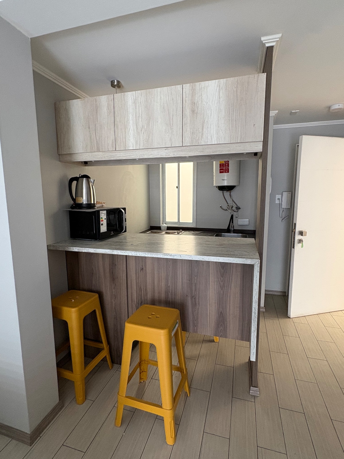 Se alquila acogedor mini departamento interior totalmente amoblado con locomoción a la puerta, ideal para una persona o pareja que busque comodidad y practicidad. Cuenta con: -27 mts cuadrados de espacio inteligentemente distribuidos. -WiFi -Habitación con cama de 2 plazas y closet -Dispensador de agua -Espacio de trabajo -Baño -Cocina totalmente equipada -Refrigerador/TV -Plancha/secador de pelo/ropa de cama Ubicado cerca de: - Colegio Miramar - U. de Tarapacá - Transporte público a la puerta