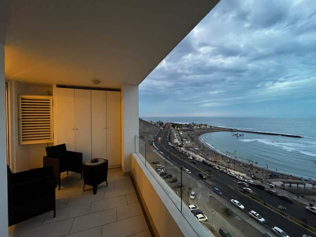 Depto nuevo con una espectacular vista al mar, situado frente a una de las mejores playas de Arica (Laucho), a pasos de restaurantes, isla del alacrán y centro histórico de la ciudad. Full amoblado con equipamiento de lujo y las mejores comodidades, 1 cama King, Tv 75”, 1 sofa/cama, amplio y cómodo sillon de cuero, cortinas black out, area de trabajo, toalla de ducha, secador de pelo, plancha de ropa, amplio refrigerador. Con piscina y estacionamiento gratis dentro del condominio.