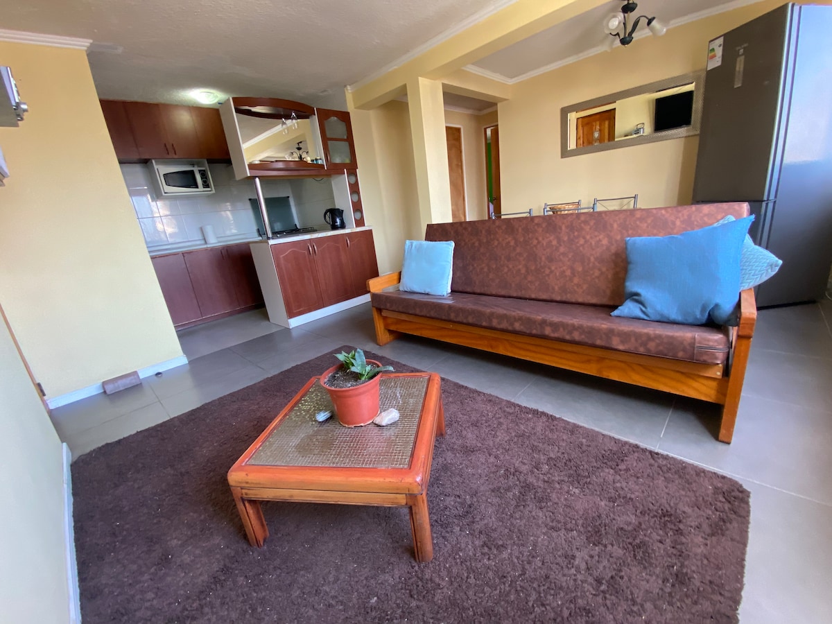 Acogedor departamento a solo 100 metros de la playa, ideal para descansar y disfrutar del borde costero. Luminoso y familiar, para estadías cortas o largas. Cuenta con cocina funcional, dormitorio cómodo, baño impecable, balcón y áreas verdes en el condominio . Ubicado cerca de restaurantes, borde costero y rutas de paseo, ofrece tranquilidad y diversión. Perfecto para parejas, viajeros solos o familias quienes buscan una escapada cómoda y segura.