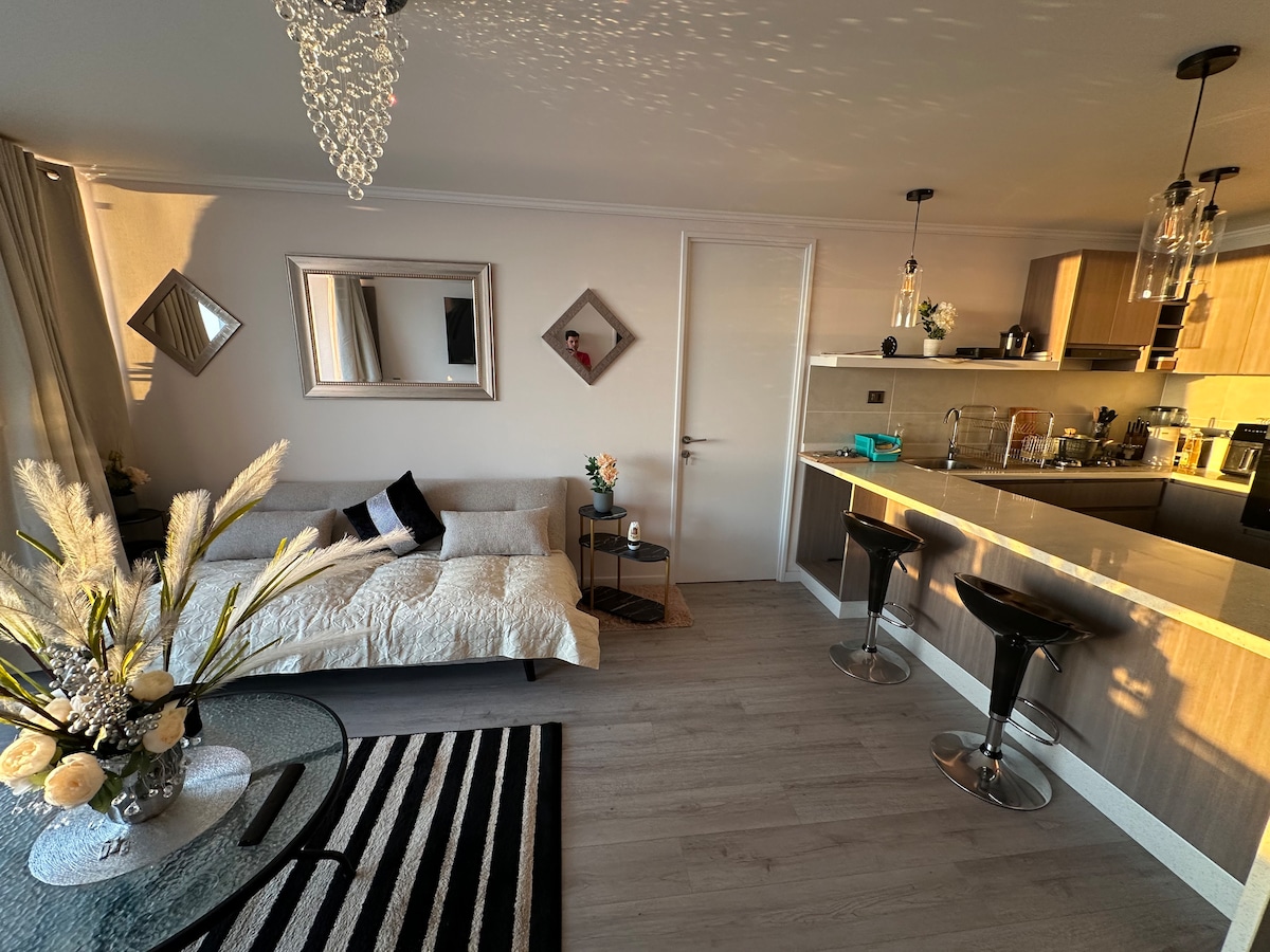 Depto nuevo con una espectacular vista al mar, situado frente a una de las mejores playas de Arica (Laucho), a pasos de restaurantes, isla del alacrán y centro histórico de la ciudad. Full amoblado con equipamiento de lujo y las mejores comodidades, 1 cama King, Tv 75”, 1 sofa/cama, amplio y cómodo sillon de cuero, cortinas black out, area de trabajo, toalla de ducha, secador de pelo, plancha de ropa, amplio refrigerador. Con piscina y estacionamiento gratis dentro del condominio.