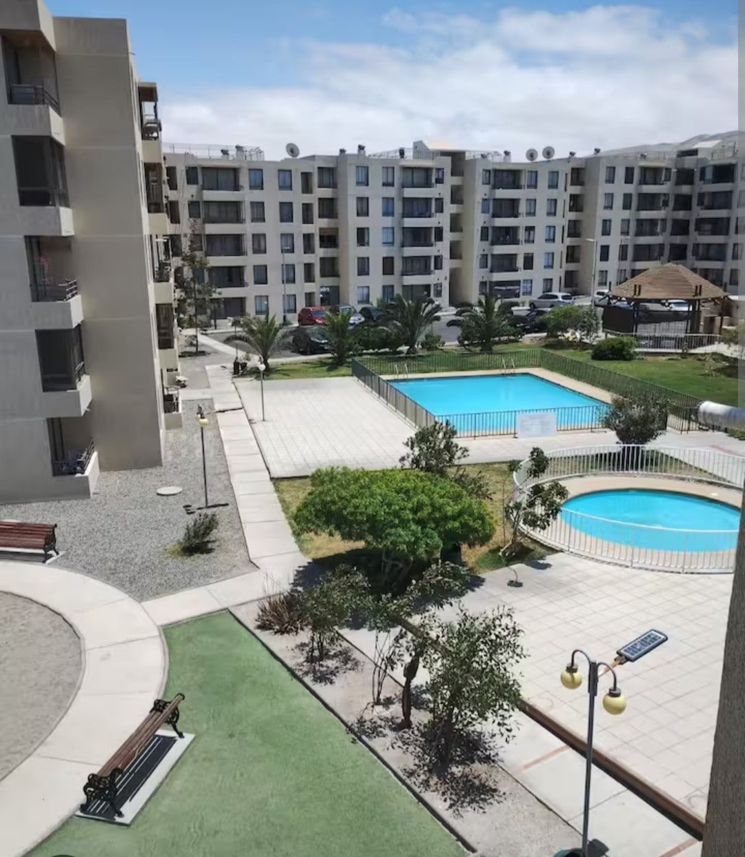 Departamento por Dia en Arica Se ofrece en Arica un lindo departamento cómodo y equipado para hasta cinco personas, disponible para arriendo por día, Cuenta con tres habitaciones, cable HD, wifi, agua caliente, estacionamiento gratis, piscina para niños y adultos, gimnasio y seguridad 24/7, ubicado cerca de la costanera norte y a aproximadamente 10 minutos del centro de la ciudad, de fácil locomoción, sector muy tranquilo.