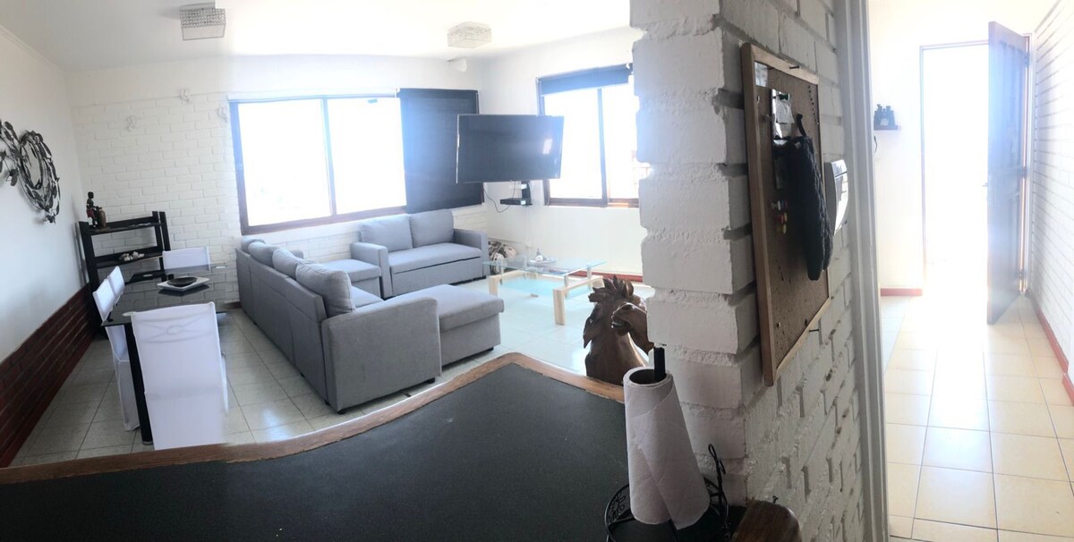 Departamento en sector Chinchorro en Arica. Este espacio promete una estadía relajante con vista al mar y a solo 3 minutos a pie de la playa. Con capacidad para acoger a 5 huéspedes, dispone de 3 dormitorios y 2 baños. El interior está completamente equipado e incluye 3 Smart TVs (58", 55" y 43"), TV-cable y Wifi. El estacionamiento privado con portón eléctrico y la malla en la terraza añade un extra de seguridad. El Condominio cuenta con piscina, áreas verdes, juegos para niños, seguridad 24/7