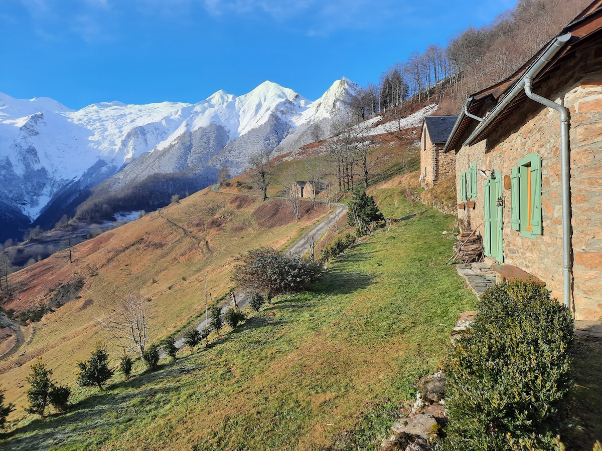 Bienvenu au Playras ! Venez vous ressourcer dans ce minuscule hameau, petit coin de paradis perché à 1100 m d altitude, orienté plein sud. Vue imprenable sur la chaîne frontalière espagnole. Ce hameau est composé d une quinzaines de granges anciennes toutes plus belles les unes que les autres, lui donnant un charme indéfinissable ! Le GR de Pays (tour du Biros) passe devant notre maison. Multiples randonnées possibles sans prendre votre voiture. Nous vous informerons volontiers !