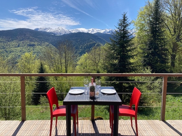 Ax 3 domaines Logement classé 5 diamants par le label qualité confort hébergement LICHÔ. Chambre pour 2 pers dans chalet situé à 300 m du centre de la station et des remontées mécaniques (rando) Salle d'eau et toilettes indépendantes. Balcon avec vue panoramique. Local à vélo ( à réserver d'avance) Wifi gratuit En supplément, possibilité de privatiser l'Espace bien être (Spa + sauna), de petit déjeuner et de diner en salle ou en terrasse selon la météo. Parking gratuit devant le chalet.