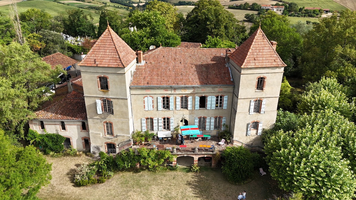C’est un beau château nature, calme, orienté plein sud, avec une vue imprenable sur les Pyrénées Ariègeoises, dans un grand parc de forêts et de prairies, à 50 min de Toulouse. Un petit paradis idéal pour profiter d’une grande famille (anniversaires, mariages, cousinades...), créer entre artistes, organiser des stages, des séminaires, ou tout autre proposition…