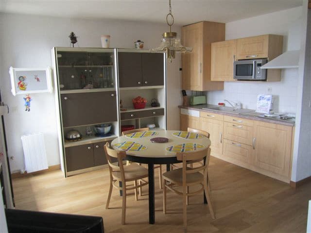 T2 cabine de 30m2 comprenant une chambre,une salle d'eau,un couloir avec 2 lits superposés et un sejour avec BZ ,cuisine equipée et TV connectée. L'appt est situé a environ 200m des pistes.L'arret de la navette, un spar, et une boucherie sont au pied de la résidence. Il dispose egalement d'un casier a ski. Des places de parking sont disponibles devant la résidence. Les draps et les serviettes ne sont pas fournis seulement les couvertures et torchons.
