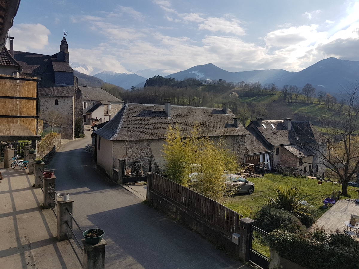 Situated in beautiful Buzan, a traditional mountain village in the Ariege with views stretching across the valley to the high Pyrenées from our doorstep. The space is recently renovated, using traditional local materials to preserve the 18th Century character of the house. It is ideal for two people. Please note we do not provide towels. The Piémont pilgrimage route (GR78) passes our front door, linking to the Camino de Santiago in Spain.