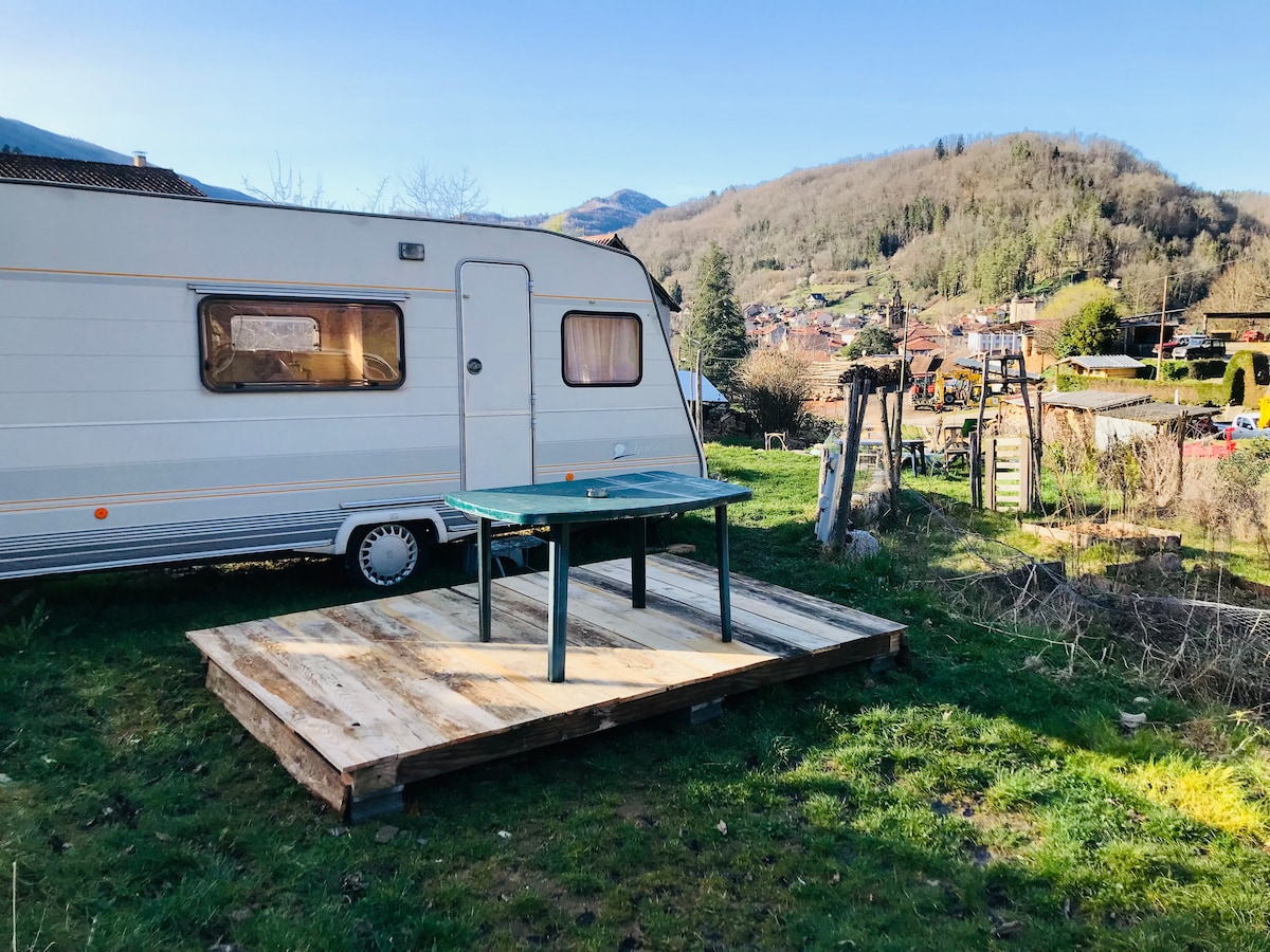 Nous mettons à votre disposition une caravane au « Jardin des Cèdres » Le temps d'une nuit, d'un week-end ou la semaine 3 - 4 places. Coin cuisine - Véranda - Sanitaire éco-responsable en autonomie. Notre petit domaine offre un bel écrin de Verdure à proximité de toutes commodités. Nombreux sites touristiques et randonnées. Balades en calèche, à cheval, en vélo. Un campement en caravane pour disposer d’une base simple, confort et profiter de nombreuses échappées belles en Ariège.