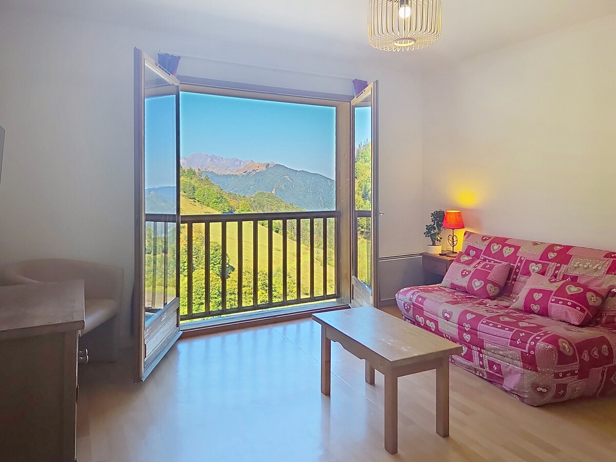 Ce logement paisible offre un séjour détente pour toute la famille de 2 à 4 personnes. Des jeux extérieur pour enfants et adultes.(nouveau SAUNA) Terrasse avec barbecue à disposition dans un écrin de verdure avec vue sur les montagnes. A votre arrivée les lits seront faits, et les draps de bain sont fournis. Vous serez à 5 minutes à pied du centre ville d'Ax les thermes.
