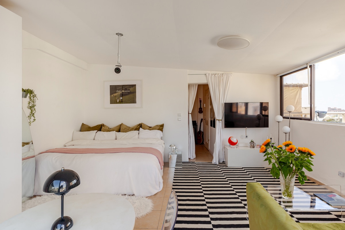 " There is a dimension in the building next door. " Discover our stylish and centrally located studio apartment in Tel Aviv! Ideal for solo travelers or couples, this cozy urban retreat offers a modern design. Immerse yourself in the vibrant city life with shops, restaurants, and cultural attractions just moments away. Experience Tel Aviv's best from the comfort of our trendy studio. Book now for an unforgettable stay!