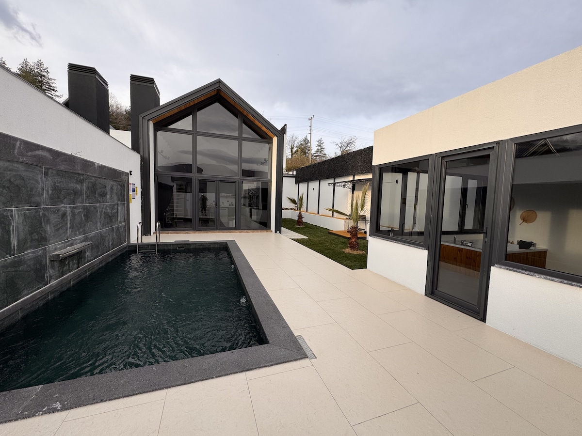 Bu huzurlu konaklama yerinde ailece dinlenebilirsiniz doğanın içinde muhteşem bir yer ,. ısıtmalı sıcak havuzlu