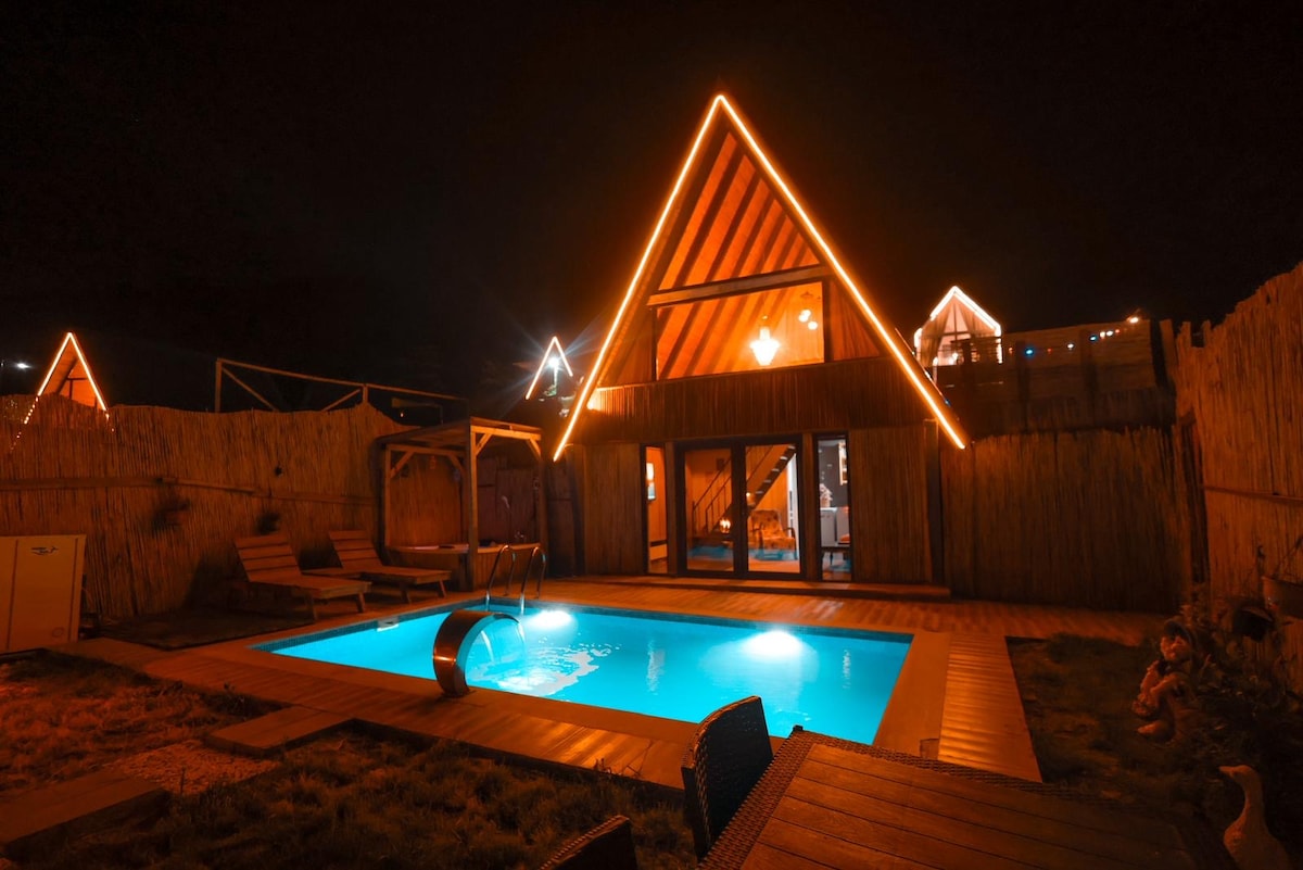 Bu üçgen çatı altında ihtiyacınız olan tüm imkanlar yerli yerinde. 3 kişilik üçgen Bungalovlarımızda ihtiyaç halinde ek yatak takviyesi ile +1 kişiyi daha ağırlayabiliyoruz. Döküm sobası, bahçe terası, taş barbeküsü, 24 saat ısıtmalı yüzme havuzu ve eşsiz göl manzarası… Dışarıdan izole edilmiş geniş bahçesiyle gözlerden ırak, size ve keyfinize ayrılmış özel bir alan.