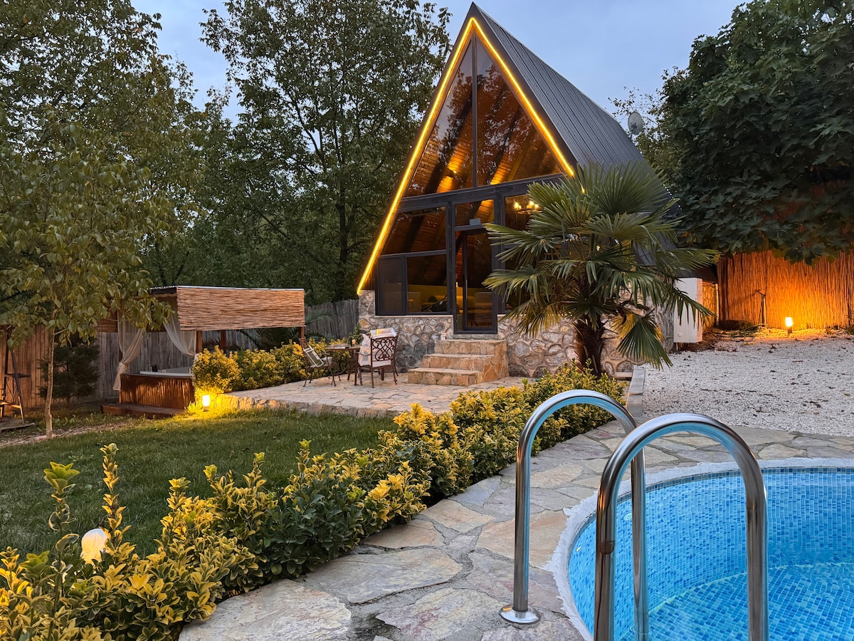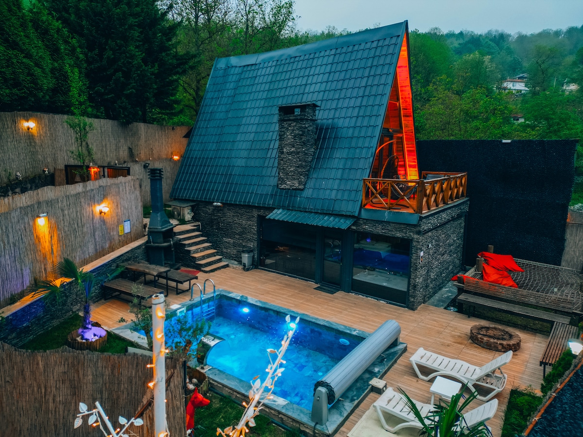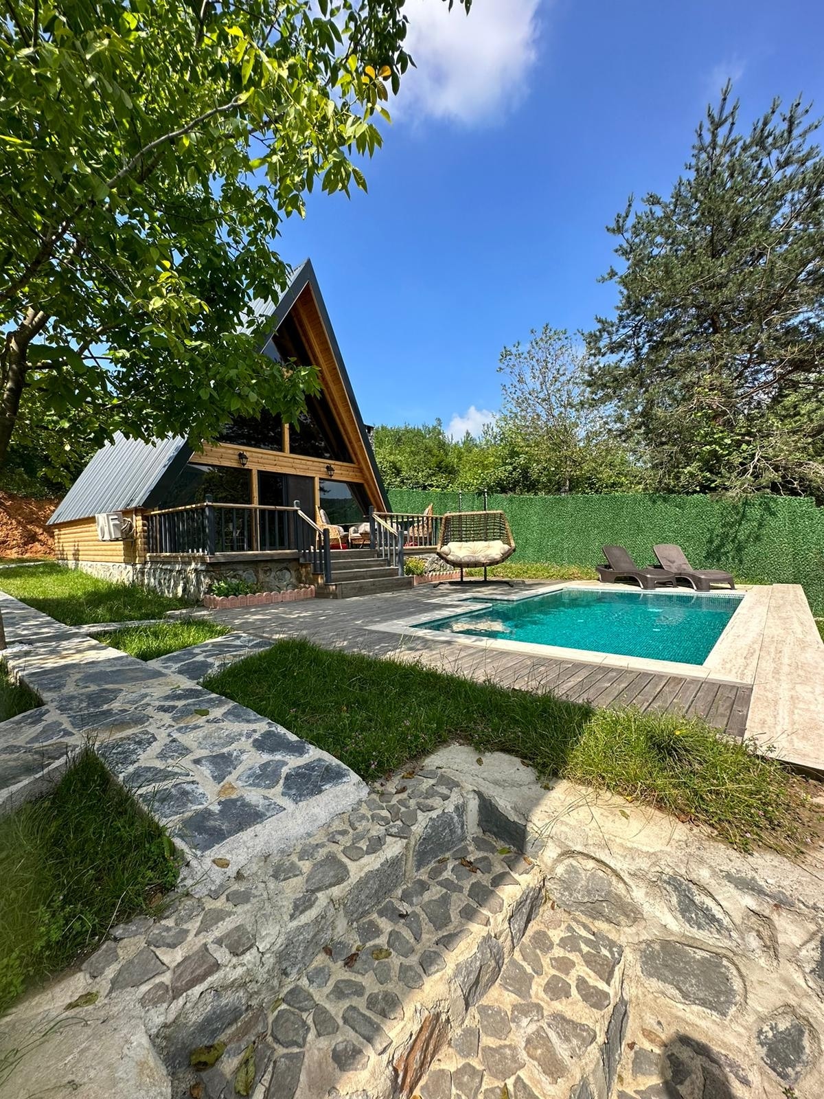 Take it easy at this unique and tranquil getaway. Loca Sapanca Bungalov 4, with a heavenly Rose concept and tones on the interior. At LOCA SAPANCA BUNGALOW every house has; a private outdoor pool, indoor Jacuzzi, stone Chimney and loft floor bed. TV unit Air conditioner mini bar Our Bungalows have front and Back terraces. On the front terrace you will find a nice garden with Barbeque area and on the back terrace you can enjoy your privacy with a private pool and sun bathing terrace.