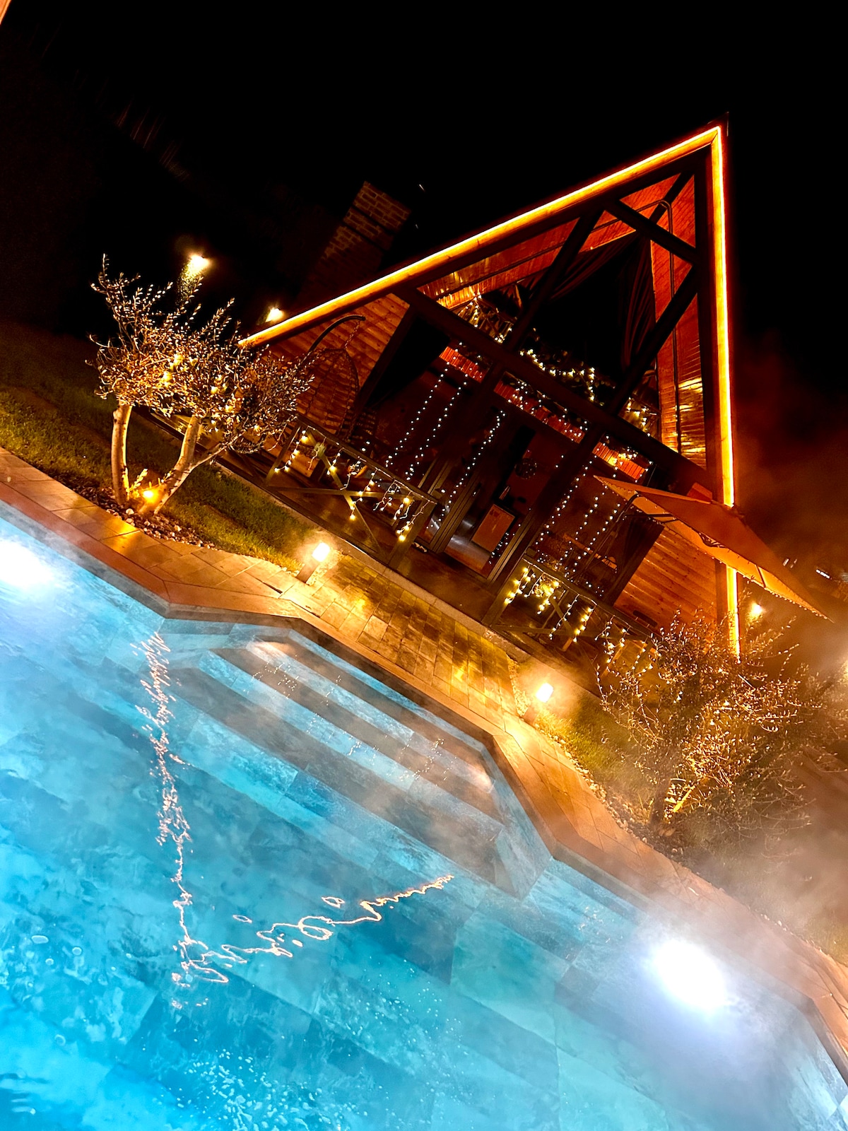Bu huzurlu konaklama yerinde ailece dinlenebilirsiniz doğanın içinde muhteşem bir yer ,. ısıtmalı sıcak havuzlu