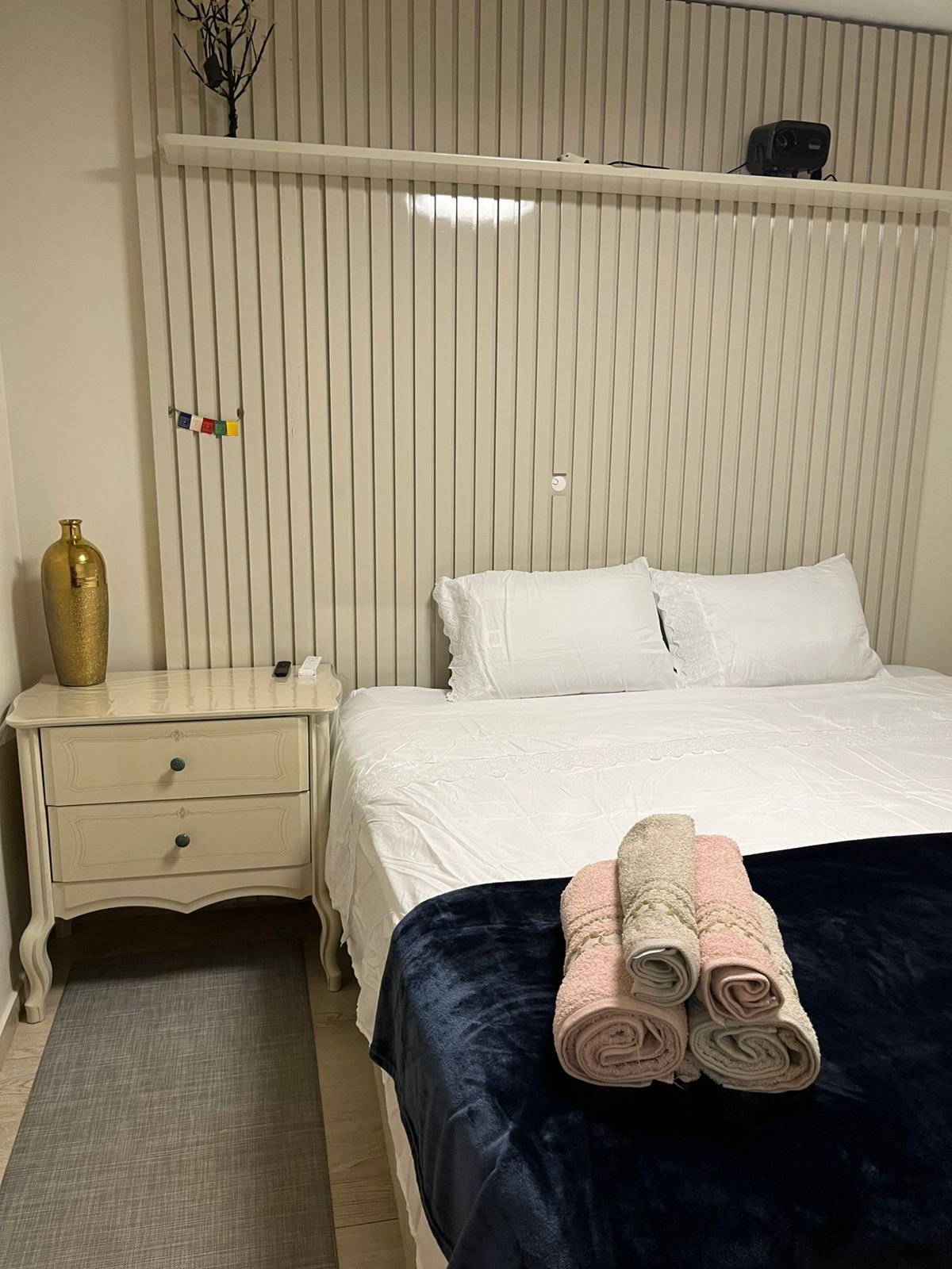 Seu lar fora de casa! Apartamento aconchegante e totalmente equipado para hospedar com conforto até 4 pessoas. Perfeito para famílias! O que você vai amar: • Conforto Total: Ar-condicionado, ventiladores e roupa de cama inclusa. • Cozinha Prática: Geladeira, micro-ondas, mini forno, liquidificador, panelas e cafeteira de cápsulas 3 Corações. • Diversão Garantida: Smart TV com acesso a Netflix e Globoplay + Wi-Fi rápido. • Praticidade: Ferro de passar. Informações Importantes: