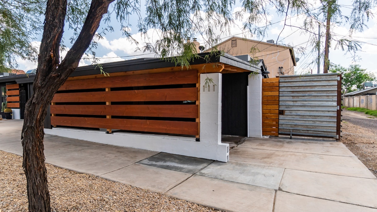 The 480 square foot Spanish inspired casita is perfect for your next visit to Phoenix. This unit offers all the amenities including a full kitchen, coffee bar, stackable washer dryer, Casper queen size mattress, SmartTV, WiFi, covered parking, and an amazing outdoor space with grill and fire pit. Walking distance to popular dining destinations Little Miss BBQ, Sushi Friend, & Timo Wine Bar. Conveniently located 15 minutes from Phoenix Sky Harbor Airport and 25 minutes from State Farm Stadium.