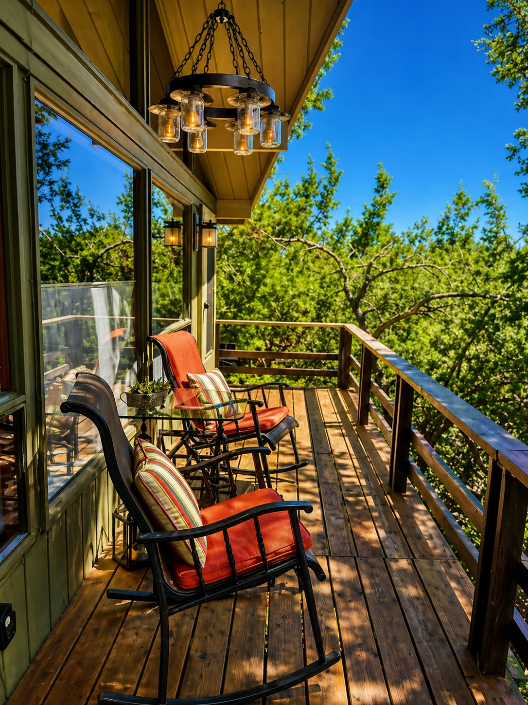 舒适的小木屋,带双层甲板和山景