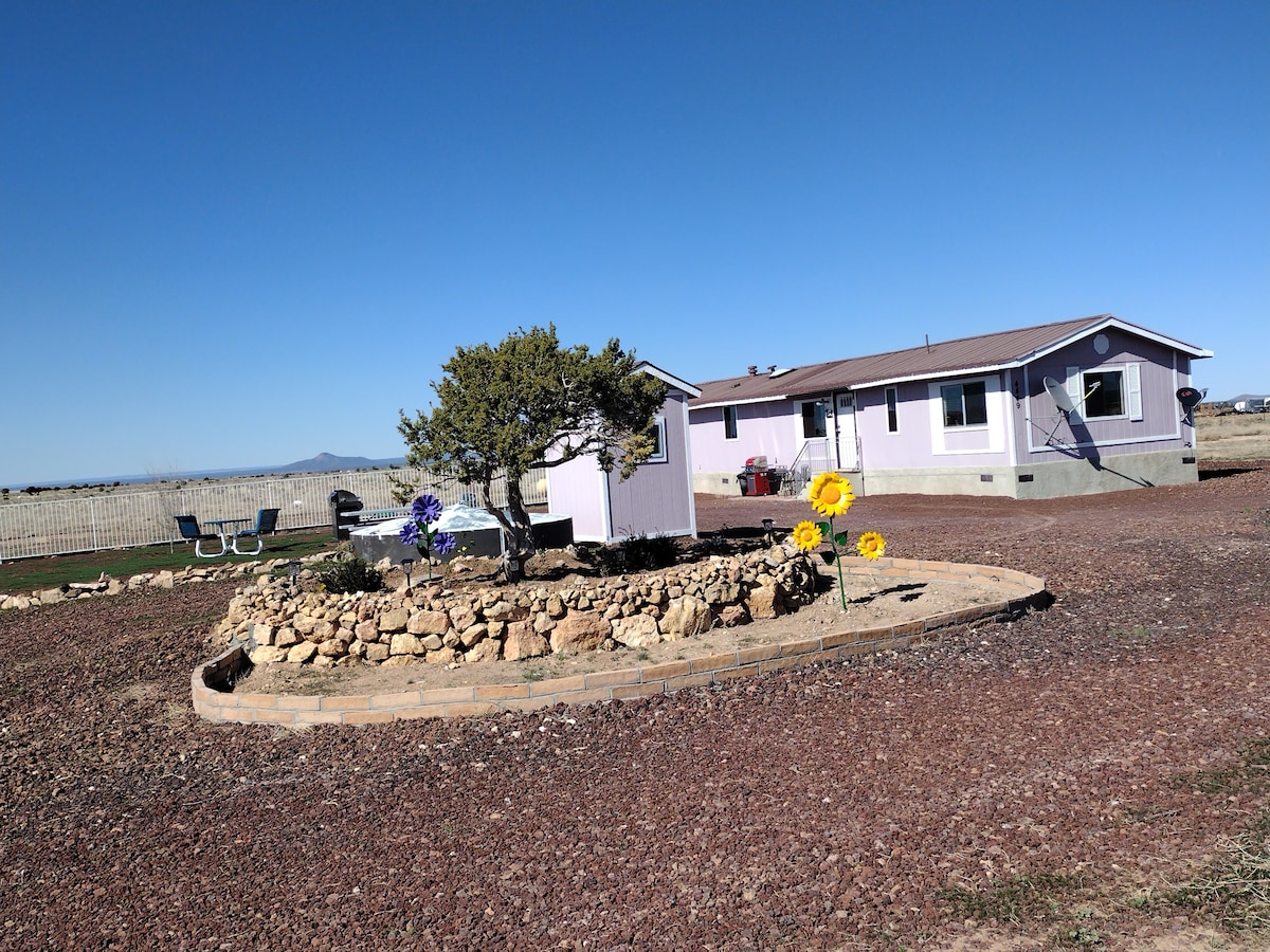 Lovely guesthouse in rural, quiet neighborhood surrounded by National Forest, dark sky stargazing, privacy, vortex energy, and plenty of visits from local wildlife! Located between the slopes of Horse Mesa and the red rocks of Lee Mountain. The private hiking trail steps from your door is part of Coconino National Forest spanning just under 300 miles with endless hiking options! Cozy 350 sq. ft. house has all the comfortable amenities. Smart TV with Directv.