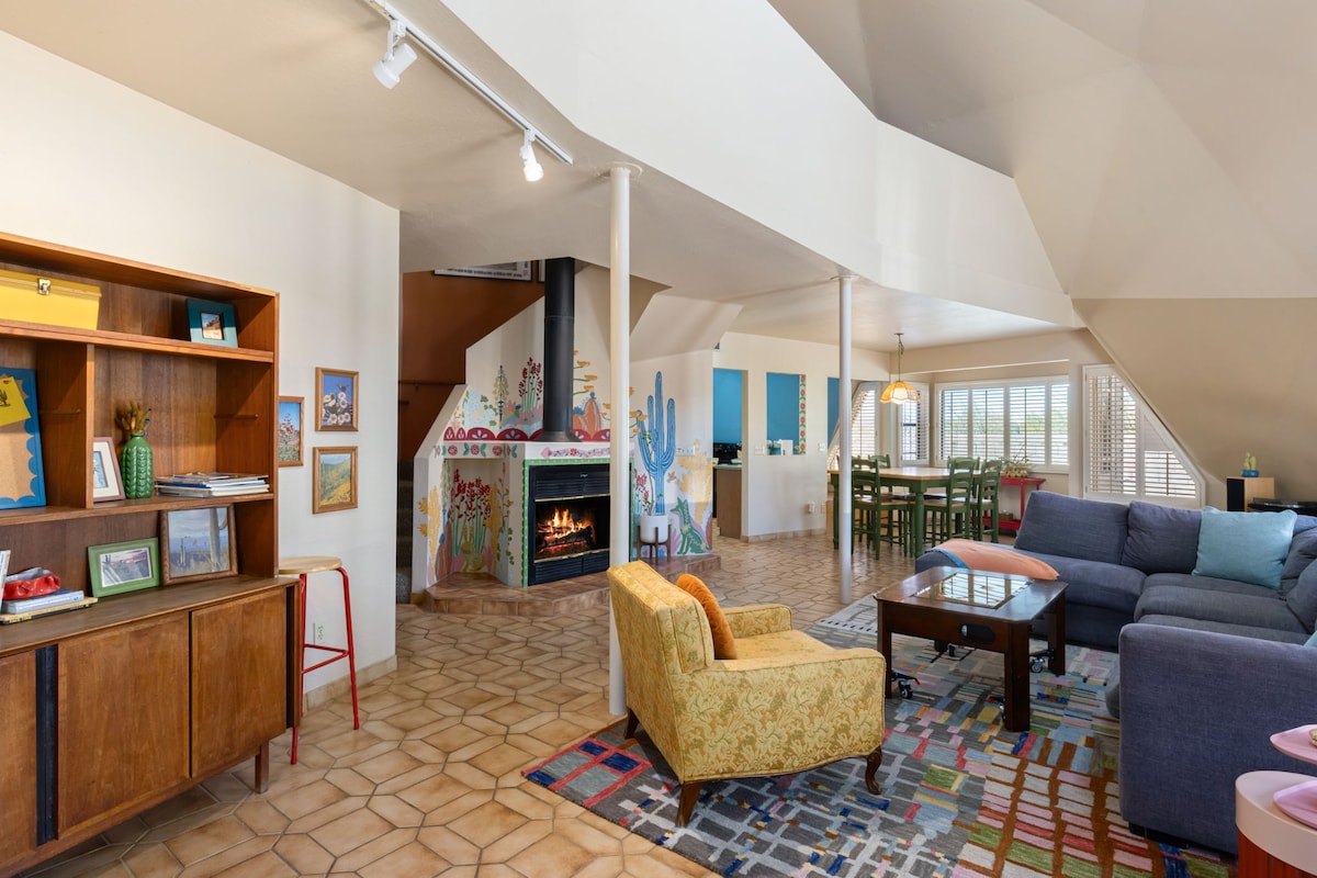 A rare 1980s dome home on 1.5 acres of private Tucson desert, filled with art, character, and room for up to 6 guests. Soaring open interiors, a loft primary suite with panoramic desert views, and a patio built for sunset evenings. Tucson Mountain Park and Gates Pass trailheads are minutes away, and downtown is a 10-minute drive. Evenings here are quiet enough to hear the desert and dark enough to see the stars.