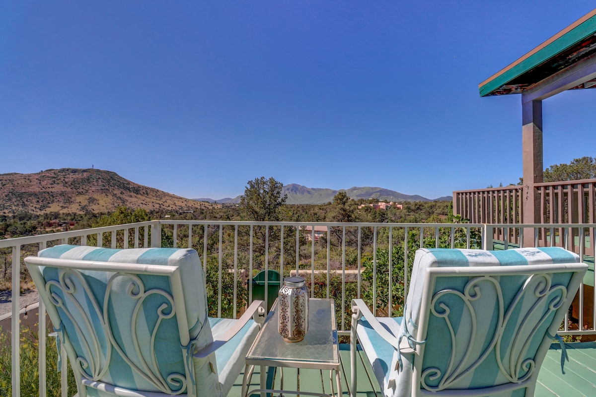 Surrounded by breathtaking red rock views, this cozy getaway features 2 inviting bedrooms, 1 bathroom, and a comfy pull-out couch by the fireplace—perfect for relaxing after a day of adventure. Savor your morning coffee on the deck as you soak in the natural beauty that surrounds you. This haven is a perfect blend of relaxation and exploration, just moments away from scenic trails and vibrant local culture. Book your unforgettable stay today!