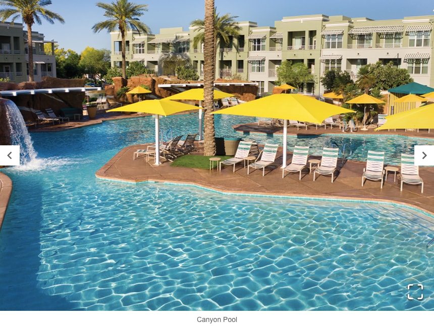 This is Marriott's timeshare, ideally placed, just a short drive from the Grand Canyon, Sedona and other attractions. Enjoy a few rounds of table tennis, exercise in our fitness center or swim in one of swimming pools while your kids play on the splash pad at our family-friendly resort in Phoenix. Indulge in a poolside meal at Canyon Springs Bar & Grill. Units are available in 3 sizes: Studio, 1 and 2 bedrooms. Price is typically 25-50% higher for each upgrade. Please inquire about availability.