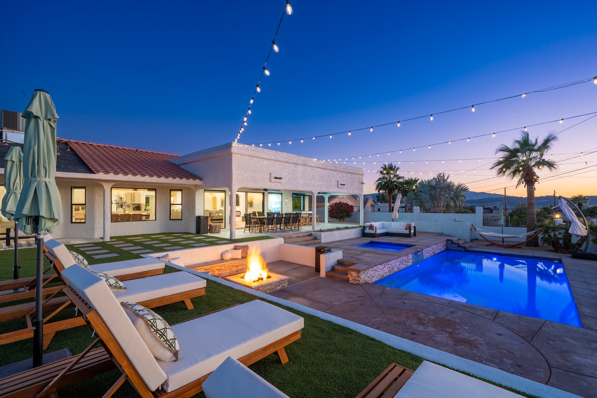 Pool+Fire Pit+Beauty Bar+King Beds+Yard Games