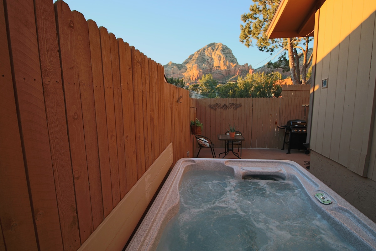 Immerse yourself in the amazing ambiance that is Birdsong Casita. Surrounded by all the best that Sedona has to offer -- close to hiking, amazing rock formations, and excellent restaurants - be prepared to be in awe of the surroundings. Relax after a busy day exploring Sedona in the yard with an awesome BBQ grill, fire pit, and birds! This is one of two casitas on the property, each with a private entrance. Located near trails and grocery stores. Quiet space.