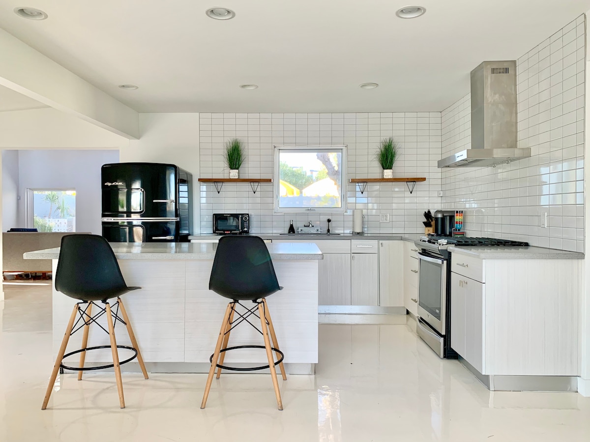 The historic Willo district of Central Phoenix is the perfect location to relax. Close to many attractions and major freeways, this completely renovated mid-century home offers the ultimate in both luxury and high-end fixtures. Inside, you can pamper yourself in the deep tub (with endless hot water) or multi-faucet shower, snuggle in the luxurious beds, or just laze in front of the 65" 4K TV. Outside, you can relax beside the pool (ask about heating), or just gather under the shaded patio.