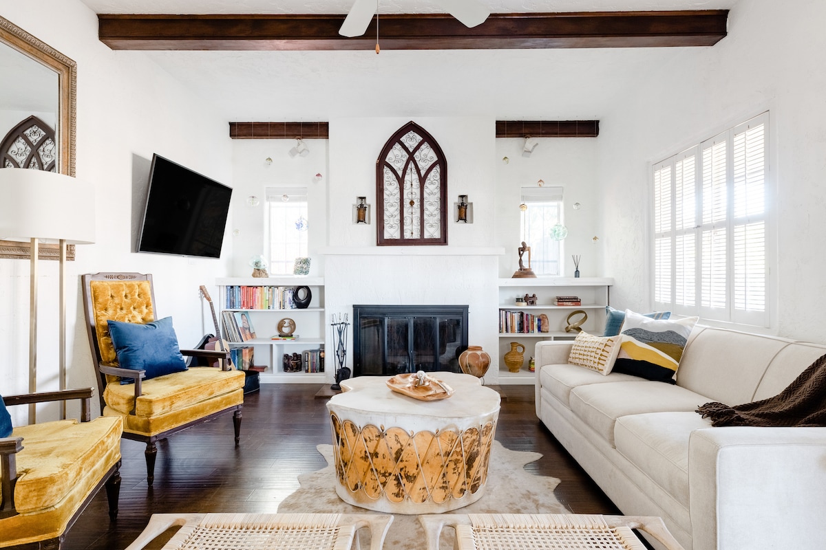 Experience Monarch House in a Phoenix Historic District—your spa-like retreat with unique artistic touches. The well-designed interior features a dining room and a fully equipped kitchen, perfect for memorable meals. Located in Uptown Phoenix, enjoy trendy restaurants, local boutiques, and vibrant nightlife just minutes away. Seamlessly switch between two private outdoor spaces and a shared courtyard, featuring an outdoor dining room and cozy fire pit.
