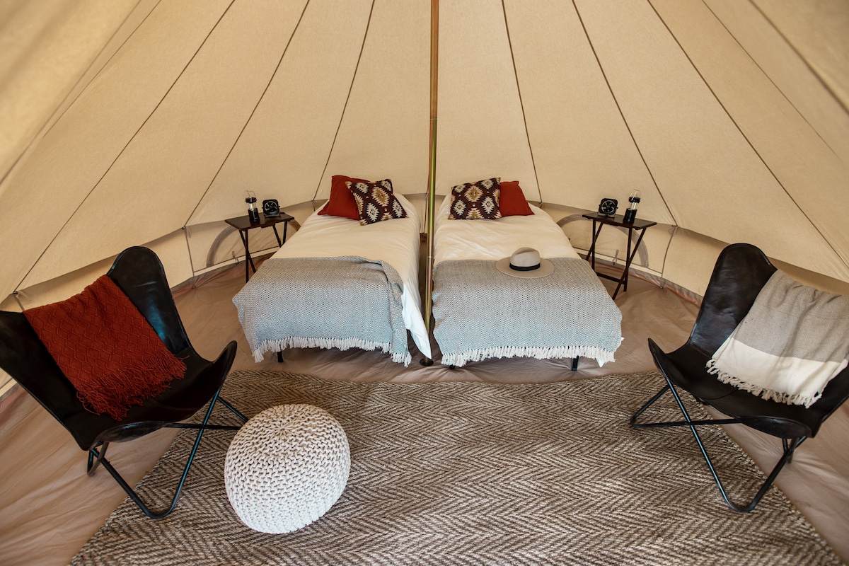 Shash Dine' EcoRetreat: A Glamping Hotel: Your basecamp for Antelope Canyon, Horseshoe Bend, Lake Powell, the Grand Canyon, and more. Shash Dine' has been featured and/or recommended by Airbnb, HGTV, Condé Nast Traveler, Travel & Leisure, The Guardian, USA TODAY, Phoenix Magazine, The Huffington Post, The Lake Powell Chronicle, Arizona Highways, The Grand Canyon Trust, Indian Country Today, and the Navajo Times. The Bell Tent well appointed.