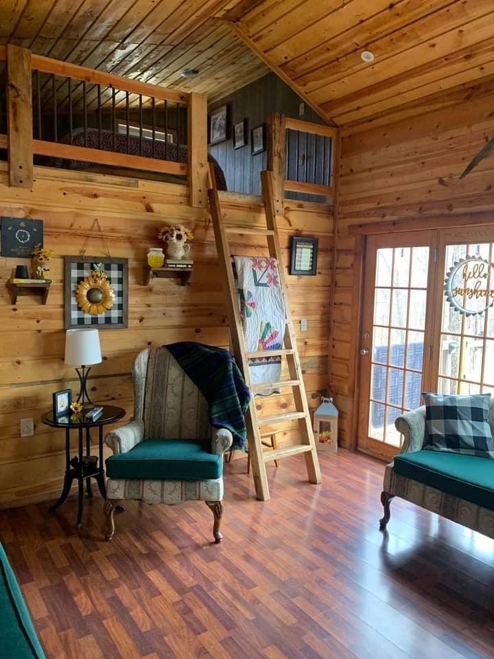 Now to accompany our "barn style cottage"on the same property and all the same amenities and views of the great outdoors.You will fall in love with this spacious cabin from the first step you take into it ,with its high ceiling and three seperate sleeping areas.It comes with all the amenities of home with a great cabin feel.No pets allowed in the cabin but Ask us about boarding your dog in our climate controlled kennel on the property just a short distance from the cabin.