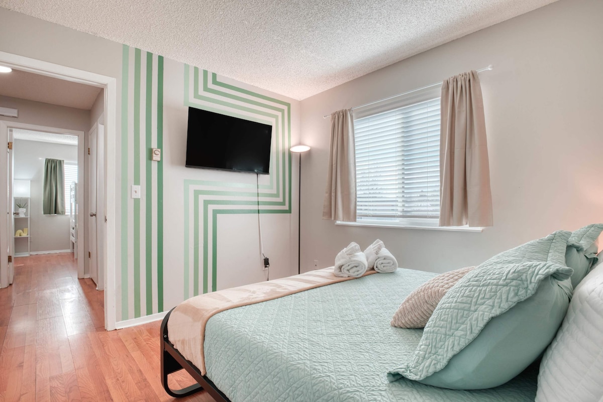 Upgrades: -as of July 2024 1. Water softener system -Jan 2024. 2. Laundry services available for a fee ($3 per load to wash, $3 per load to dry) 3. Tankless water heater added 4. New paint and renovation of interior images. A tiny quiet cove of delight with a private entrance and self check in/out process access. Cozy, quaint, and quiet. Awaken refreshed after sleeping comfortably on a Serta Perfect Sleeper mattress. No need to meet with host. Let yourself in.