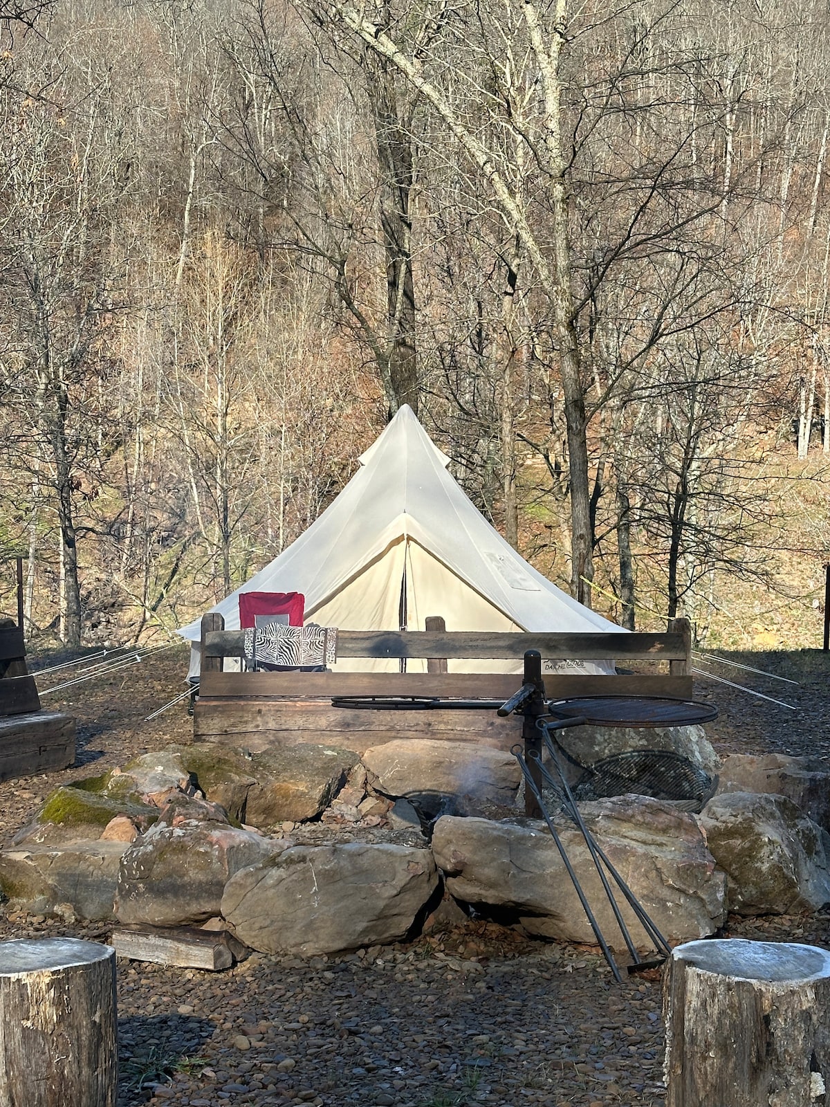 豪华Creekside Glamping帐篷,带热水浴缸和景观