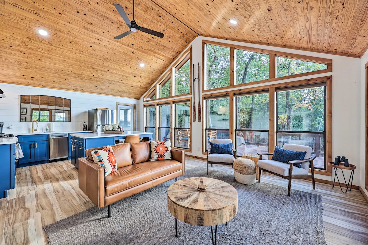 Experience lakefront living at this Rogers vacation rental! Nestled on over 1 acre of property that boasts private beach access, this 2-bedroom, 1-bathroom cabin provides an ideal place to enjoy nature's beauty and the company of your loved ones in privacy. Sip your morning coffee with a scenic backdrop, then opt to relax in the stylish interior or head outside for a variety of adventures. Go kayaking or swimming, gather around the fire pit, and explore Hobbs State Park — fun-filled days await!