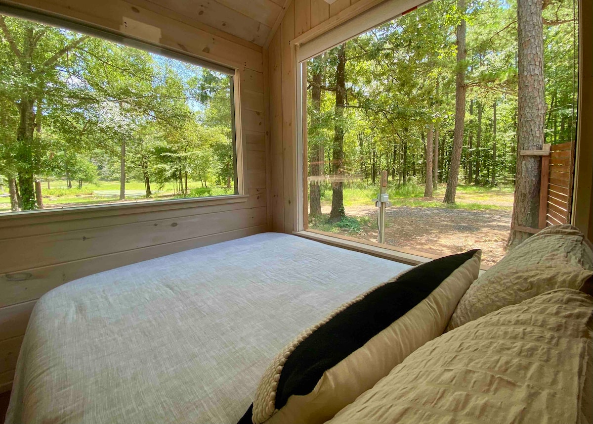 Kick back and relax in this peaceful stylish space. Nestled in the mountains of Hot Springs, Arkansas. A private cabin with a back deck overlooking the city. There will also be a continental style breakfast with homemade goodies. Enjoy a pillow-top king bed while gazing at the stars through a glass wall. Whether you’re here with your special someone or just here by yourself to relax and recharge we welcome all our guest to explore the area and take advantage of all the amenities offered.