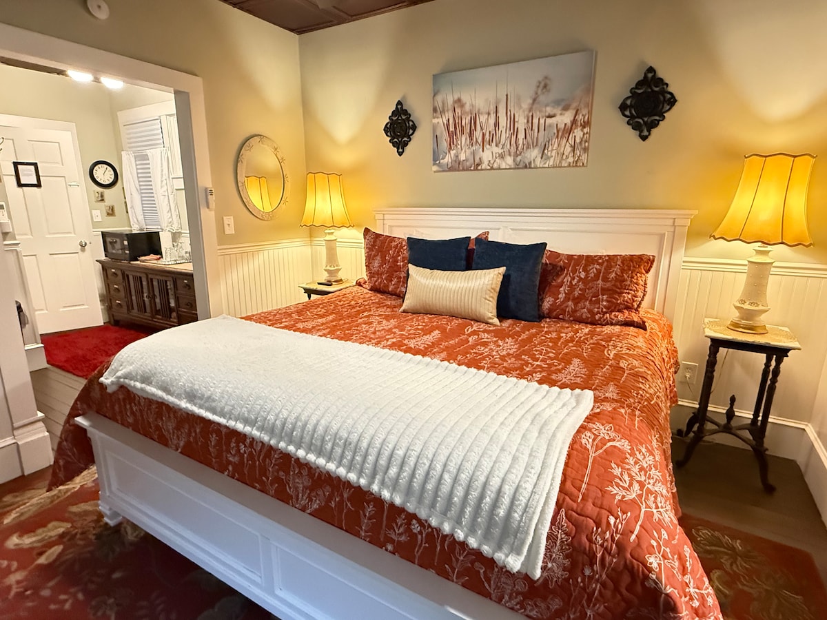 The best of both worlds. Only a short walk to downtown & Bath House Row, with a trailhead to the gorgeous North Mountain trail system right across from your front porch! Private suite in a cozy 1926 duplex cottage in the historic Park Avenue neighborhood. Front and back porches. Great for arts & culturally-inclined seeking peace and quiet. Queen size bed and wardrobe. Kitchenette with sink, fridge microwave & toaster oven. Full bathroom. WiFi and 23" TV screen for streaming. Off-street parking.