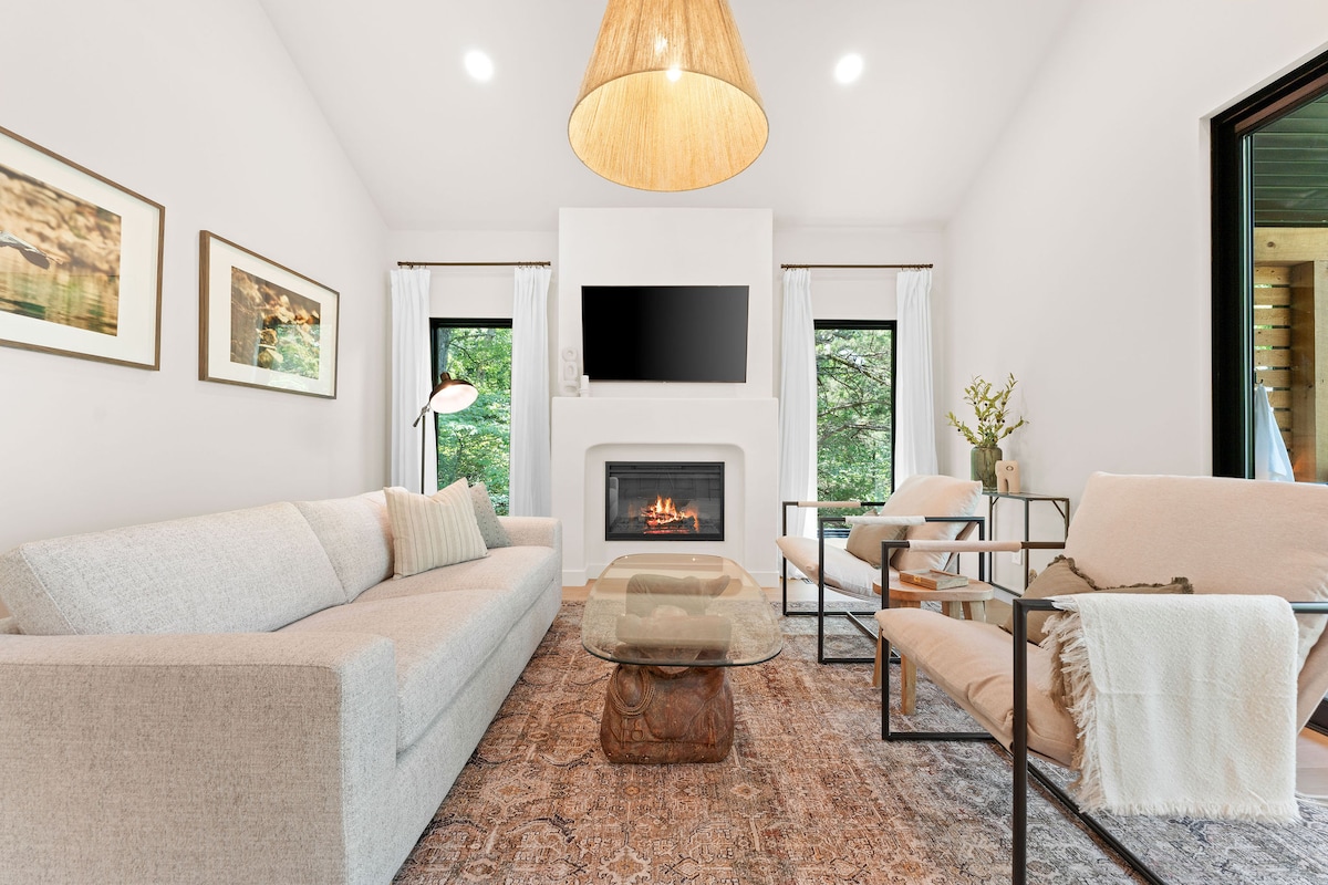 This fully stocked home welcomes you into the beautiful wooded views for ultimate peace and relaxation. There is a surprise waiting for you in every corner, from the modern yet rustic décor to the amazing deck which nestles beautifully into the trees just like a tree house. If you're feeling adventurous, a private yet steep trail will lead you to your own private dock where you can enjoy amazing views of a calm and quiet lake which you will almost always have to yourself.