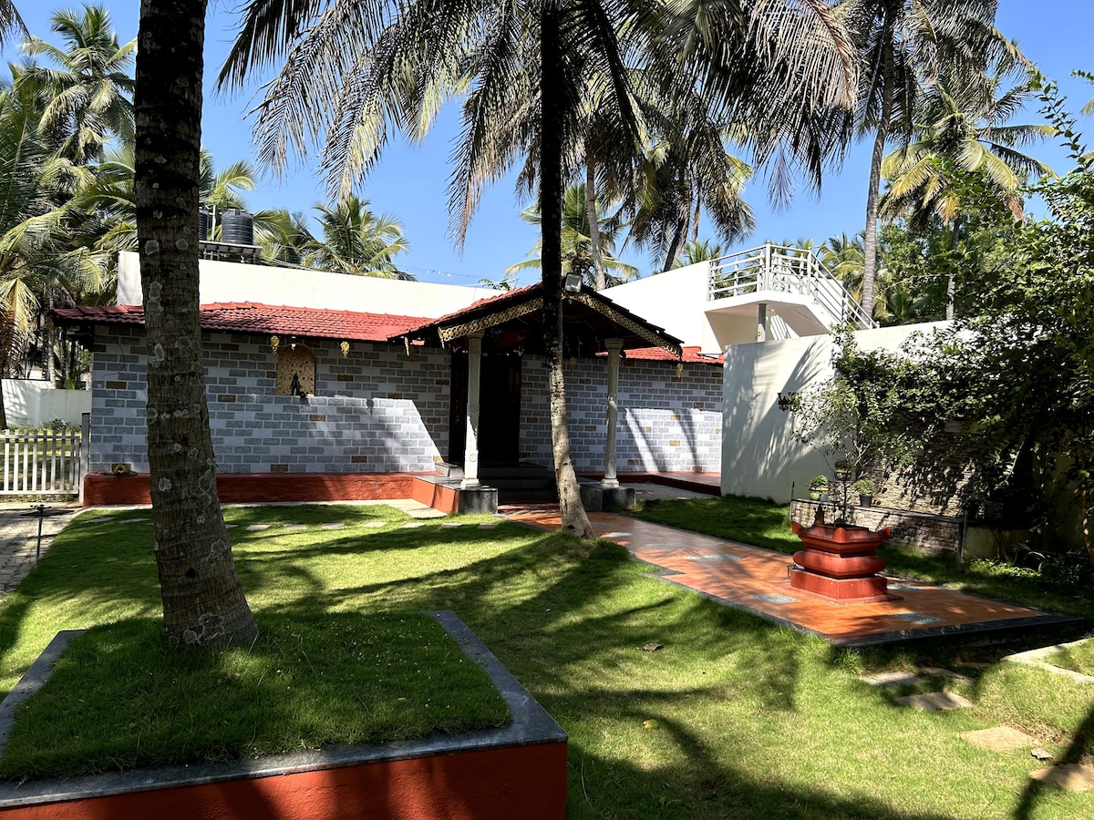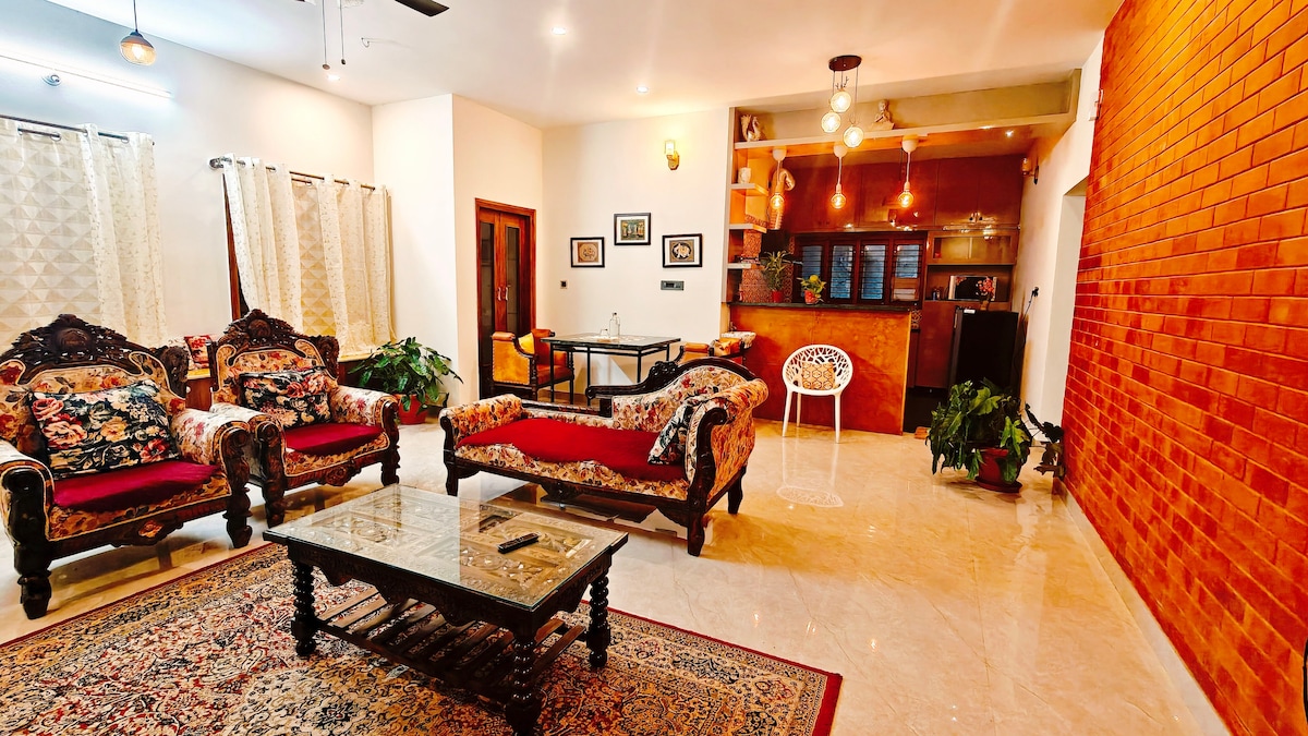 Parvati, a cozy one-bedroom home that offers a full-unit experience with all the amenities you need for a comfortable stay. Whether you’re visiting for work or leisure, it provides a peaceful escape in the heart of Bangalore, blending modern comfort with nature’s charm. Surrounded by a lush garden with a private portico, the home is designed with an antique theme, featuring a natural well, delightful poster bed and vintage decor that creates a warm, inviting atmosphere.