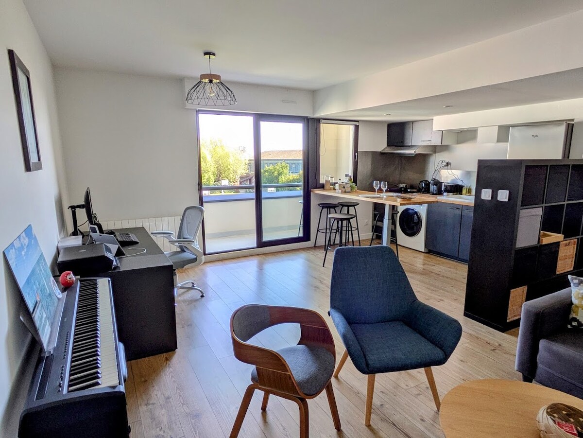 ❤波尔多(塔朗斯)舒适的一室公寓,停车场和电车站5分钟