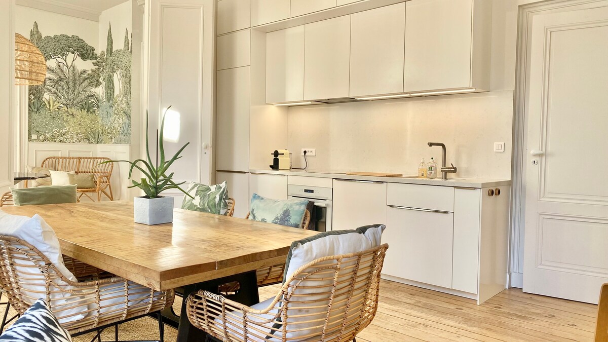 Welcome to Maison Mondernad. A stylish and atypical apartment at a Noble 18th century "Hotel Particulier" : • Located at St. Michel district (heart of Bordeaux), 3 mn to the Grosse Cloche and Porte de Bourgogne, shops and restaurants • 46 m² / 495 ft² • Fully furnished & carefully decorated • Suitable for couples, families and remote work • Enjoy a fast Wi-Fi, Tv with Apple Tv, Netflix, Cable, books and boardgames ! Experience Bordeaux like a local, make your reservation today!