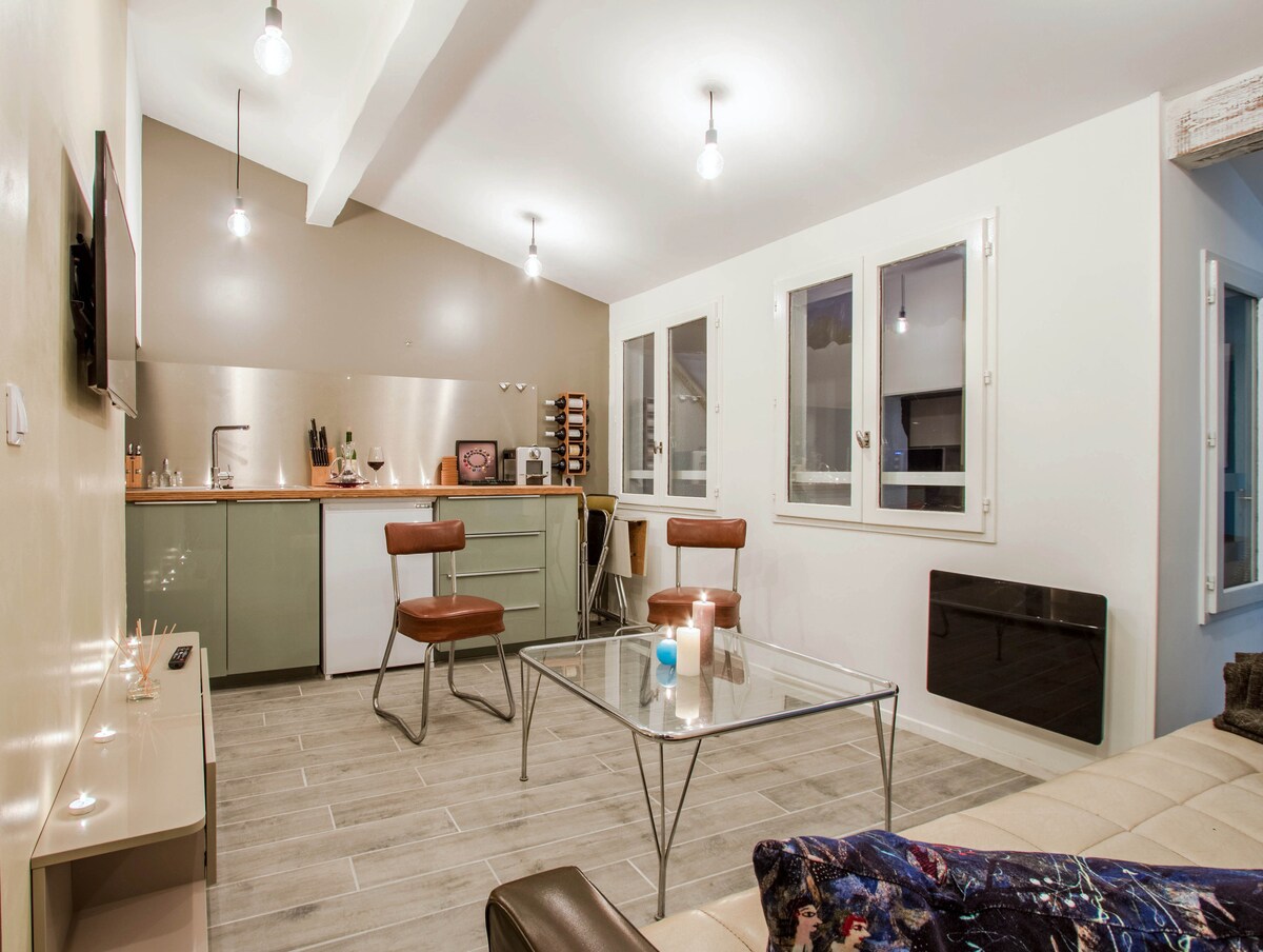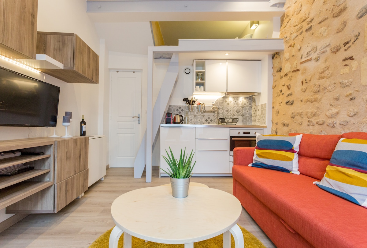 Pretty and typical small apartment in center of Bordeaux . It is completely renovated. It is located on a small square in the historic, cosmopolitan and lively district of Saint Michel. You are close to the train station and street St Catherine ( 5 min ). I propose in addition the rental of a secure parking space near the studio in the same area (less than 5 minutes by car and 12 minutes walk from the apartment).You will have the Netflix channel for free.